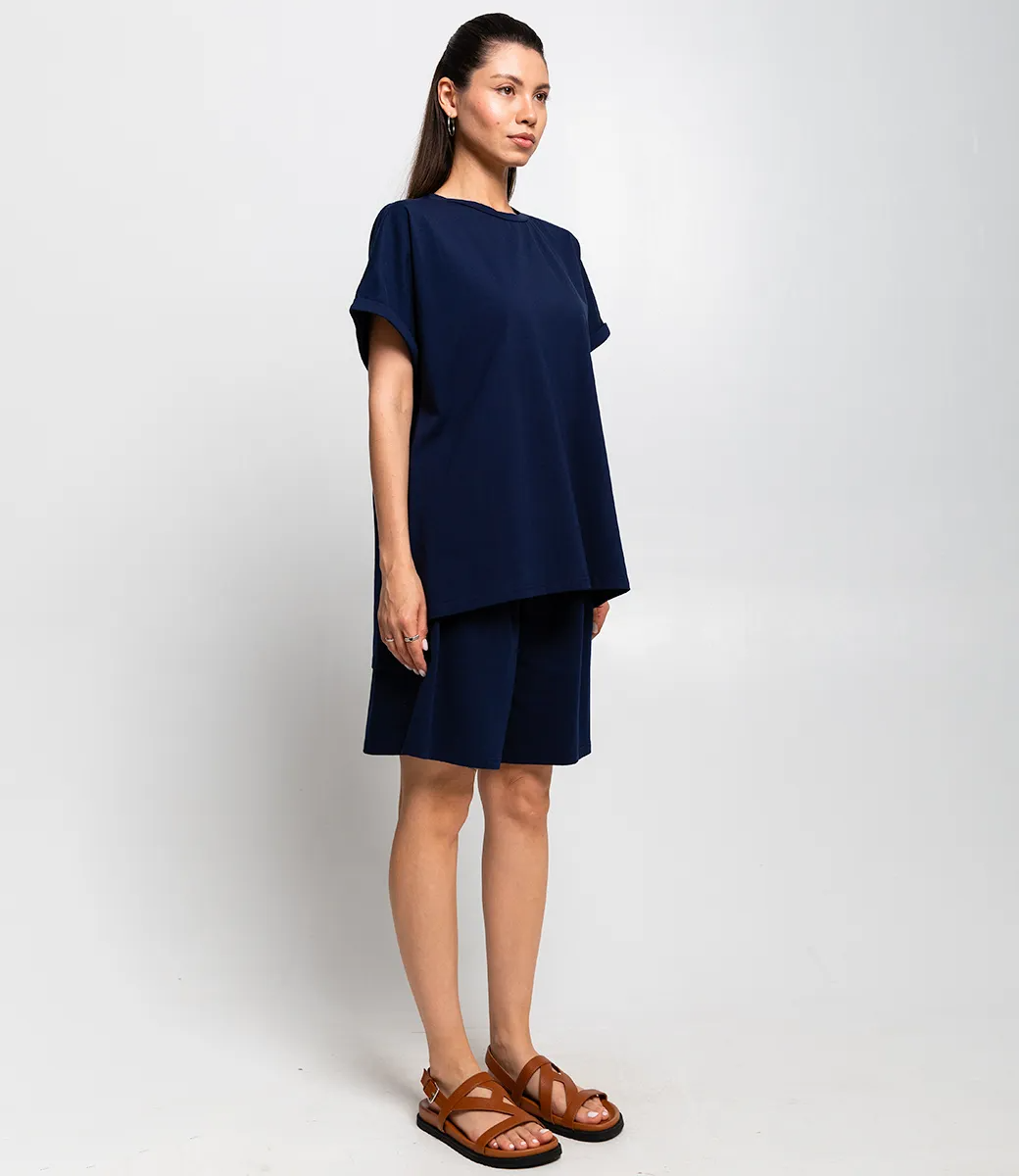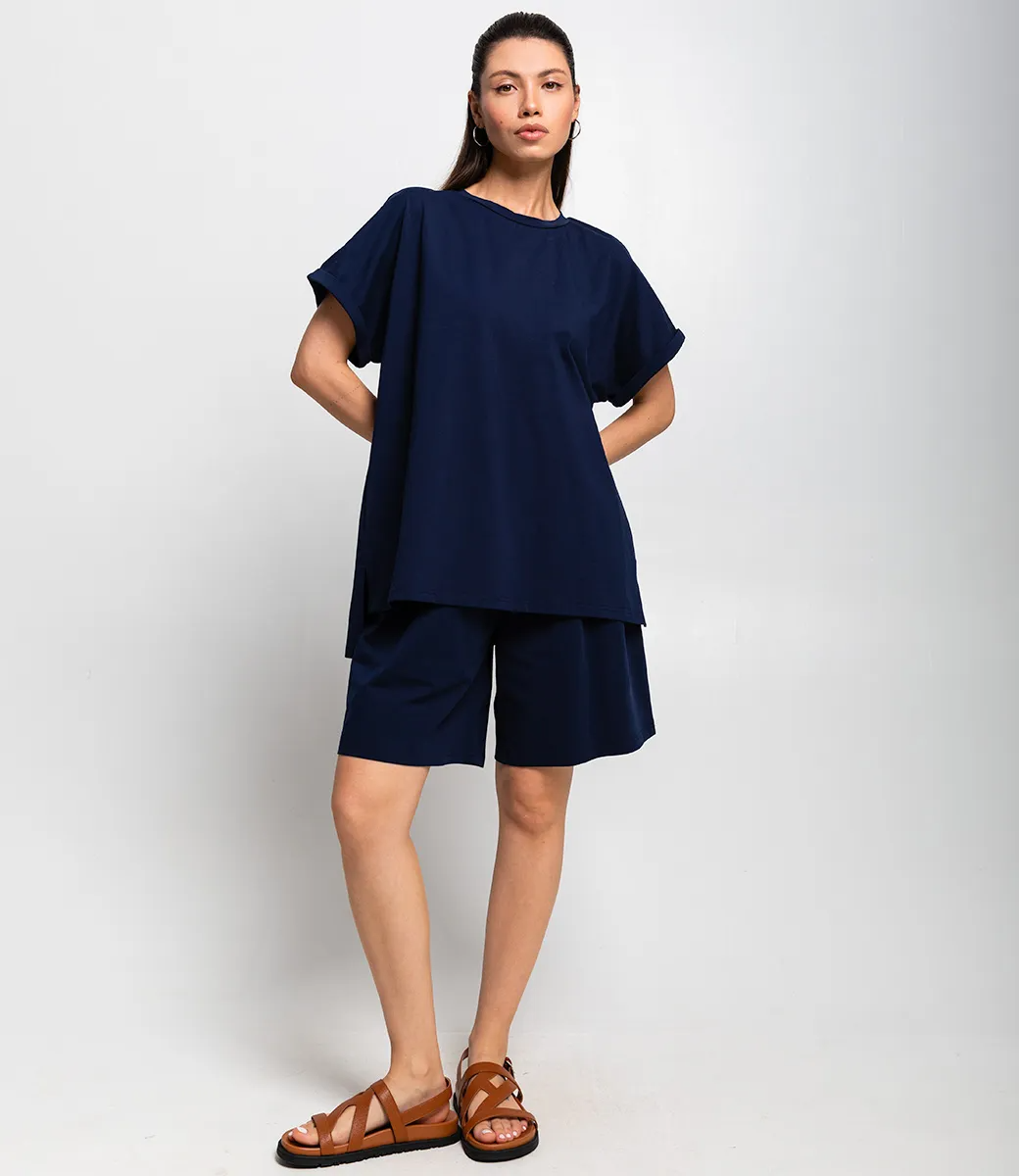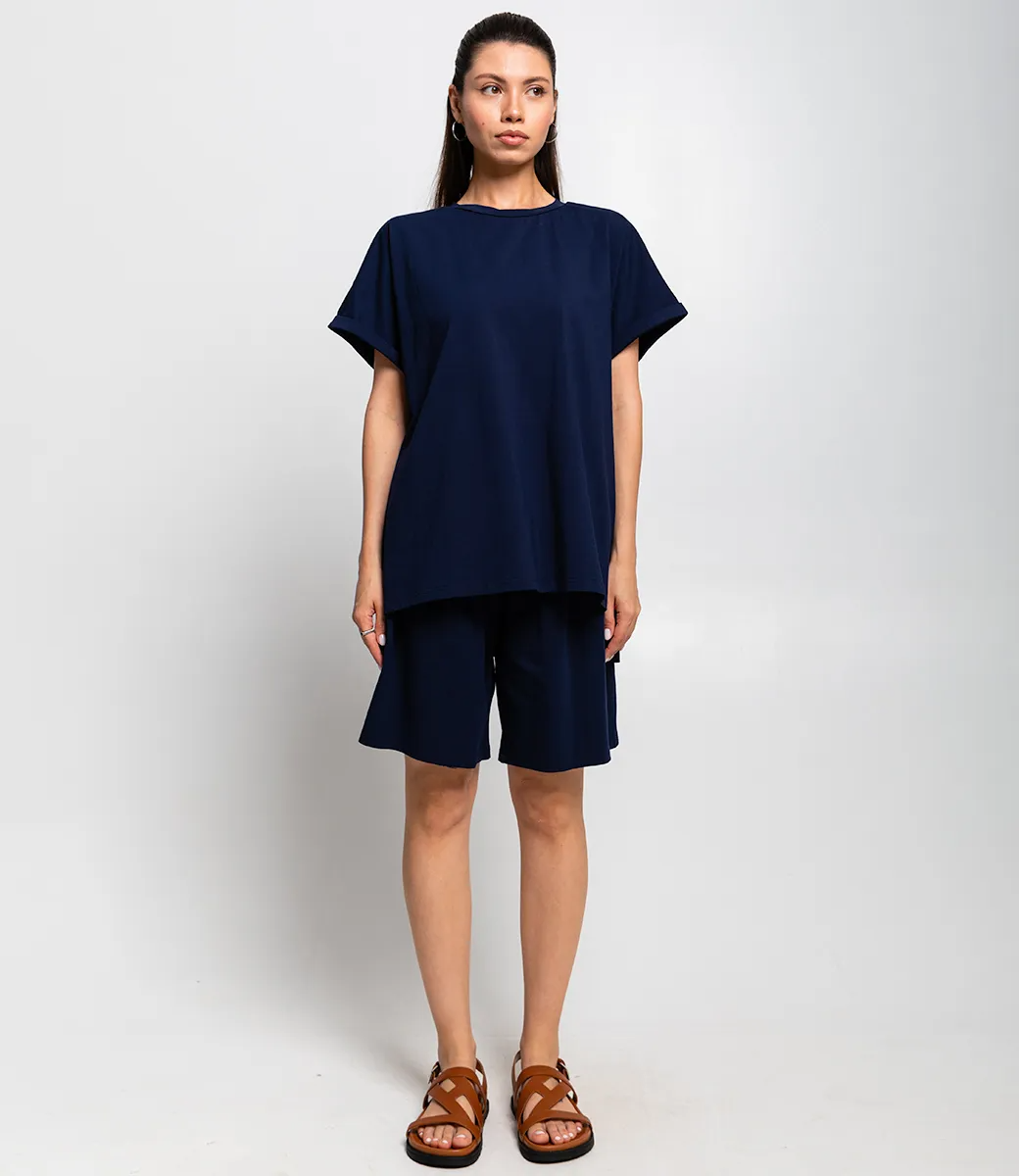 Костюм – это эффектная часть гардероба, подчеркивающая женственность и уникальность каждой представительницы прекрасного пола. Костюм состоит из двух частей — свободной футболки и шорт, выполненных в спокойном темно-коричневом цвете. Футболка имеет классический круглый вырез и рукава средней длины с подворотом, а шорты достигают средней длины на бедрах, обеспечивая комфорт и свободу движений. Основной материал костюма — 95% полиэстер и 5% эластан. Для уверенности в размере мы представили на странице таблицу, чтобы вы могли самостоятельно обмерить себя и убедиться в идеальной посадке костюма. Предложенная нами цена является приемлемой, что делает этот комплект отличным выбором для оптовых покупателей. Не упустите возможность предложить вашим клиенткам этот стильный костюм, который станет их любимым выбором для летних дней! Позвольте вашим покупательницам наслаждаться комфортом и элегантностью с этим великолепным комплектом! Рост модели 164 см., 83-61-89.
