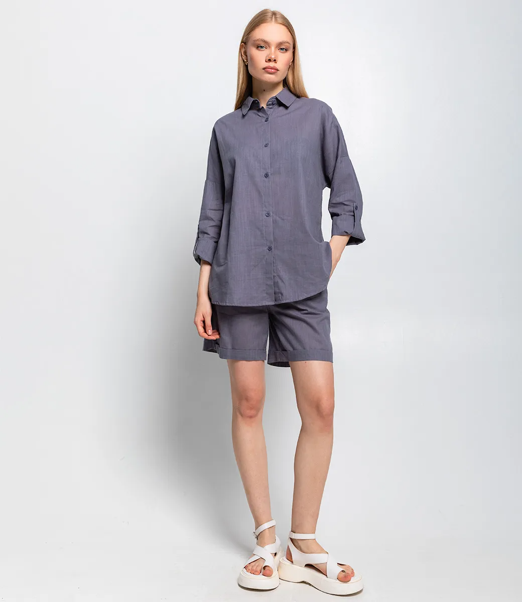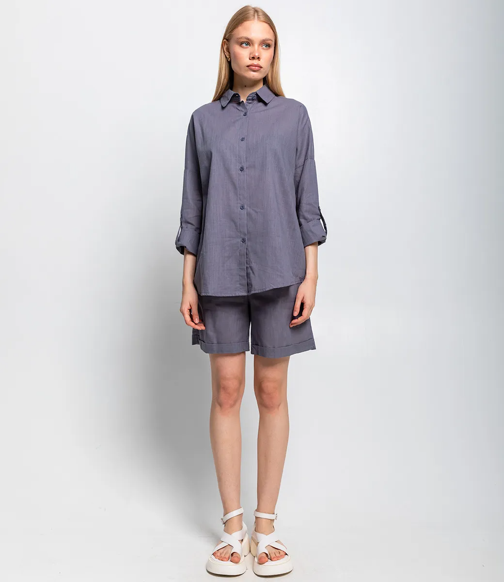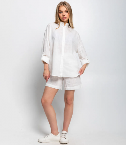 Костюм – это эффектная часть гардероба, подчеркивающая женственность и уникальность каждой представительницы прекрасного пола. Костюм выполнен из ткани, состоящей на 50% из льна и на 50% из хлопка. Такое сочетание материалов обеспечивает высокую комфортность и практичность изделия. Рубашка имеет классический фасон с воротником и застёжкой на пуговицы, а рукава средней длины можно закрепить на закрутку, что добавляет удобства и функциональности. Шорты средней длины с застёжкой на поясе и аккуратным подворотом создают образ сдержанной элегантности и практичности. Обратите внимание на цвет и фактуру ткани – они полностью соответствуют фото на сайте и прекрасно дополнят любой летний образ. Для уверенности в размере мы представили на странице таблицу, чтобы вы могли самостоятельно обмерить себя и убедиться в идеальной посадке костюма. Предложенная нами цена является приемлемой, что делает этот комплект отличным выбором для оптовых покупателей. Не упустите возможность предложить вашим клиенткам этот стильный костюм, который станет их любимым выбором для летних дней! Позвольте вашим покупательницам наслаждаться комфортом и элегантностью с этим великолепным комплектом! Рост модели 173 см., 84-58-89.