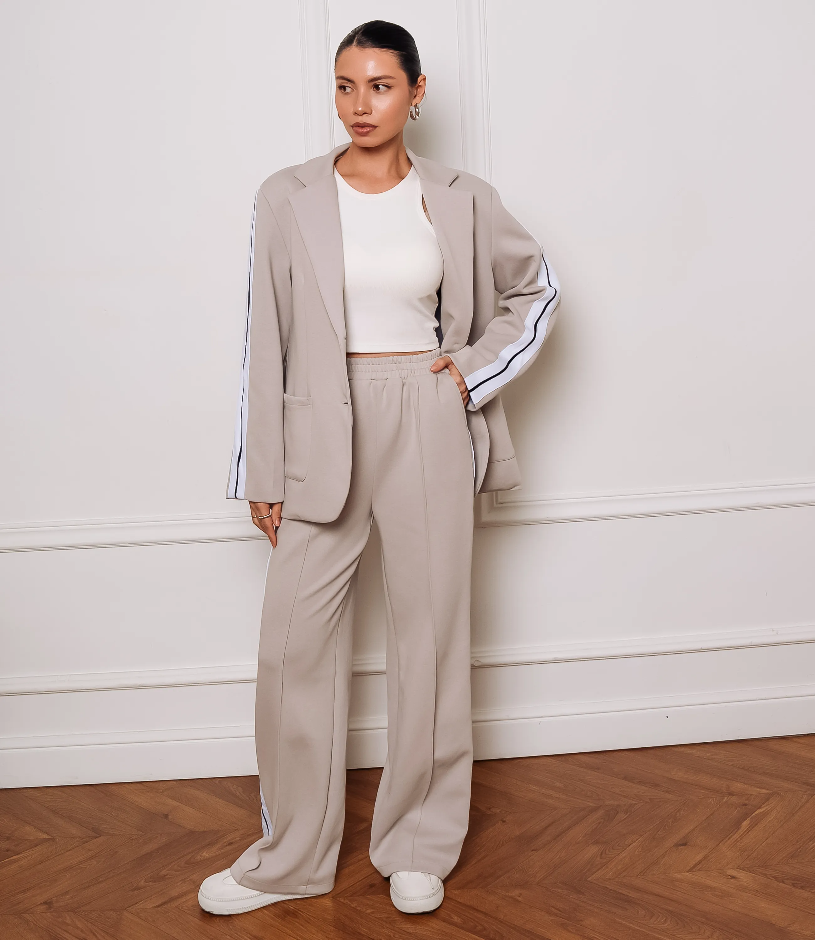 Костюм – это одежда, которая подчеркивает стиль и комфорт каждой женщины. Костюм жакета свободного прямого кроя с мягкими лацканами и длинными рукавами, на каждом рукаве проходит декоративная полоска в виде двойной контрастной вставки, начинающаяся от плеча и доходящая до манжеты; нагрудная часть жакета с ровной линией плеча, застёжка на одну крупную пуговицу, две накладные карманы средней глубины расположены на уровне бёдер. Брюки свободного прямого силуэта с высокой или средней линией талии, пояс без широкого пояса. Для изготовления использованы ткани 90% полиэстер и 10% хлопок, который характеризуются отличным качеством и дышащими свойствами. Даже после множества стирок изделие не утратит первоначальной красоты. Вы будете носить его с радостью. Обратите внимание на цвет. Он полностью соответствуют фотографии на сайте. Чтобы вы были уверены в размере, мы представили на странице таблицу. Воспользовавшись ею, вы сможете сами обмерить себя и удостовериться. Установленная нами цена является приемлемой. Не откажите себе в удовольствии быть стильной и комфортной! Рост модели 164, 83-61-89. Вы можете заказать онлайн презентацию на интересующие Вас модели. Наши менеджеры свяжутся с Вами и проведут индивидуальную видеотрансляцию, помогут составить заказ и ответят на Ваши вопросы.