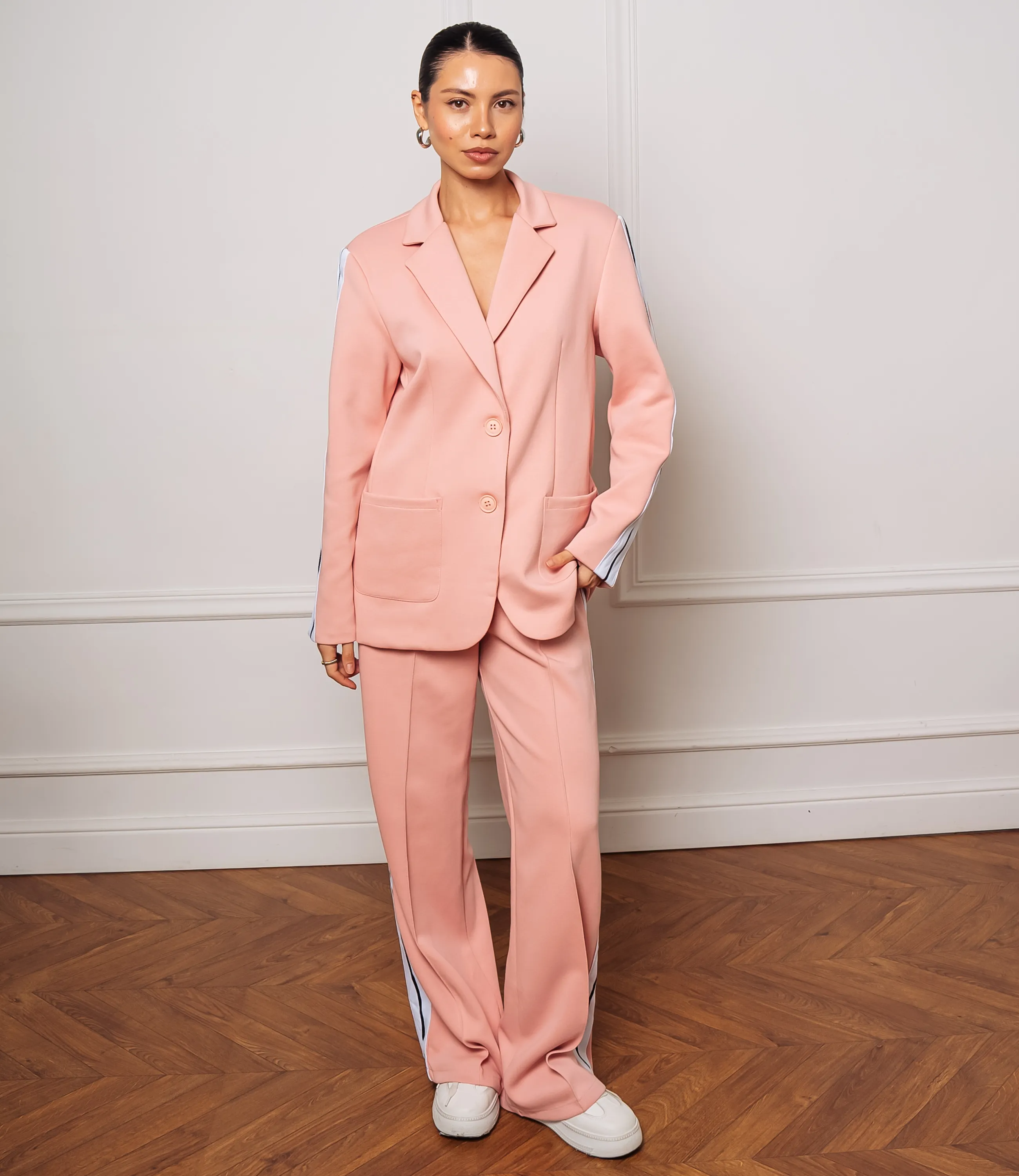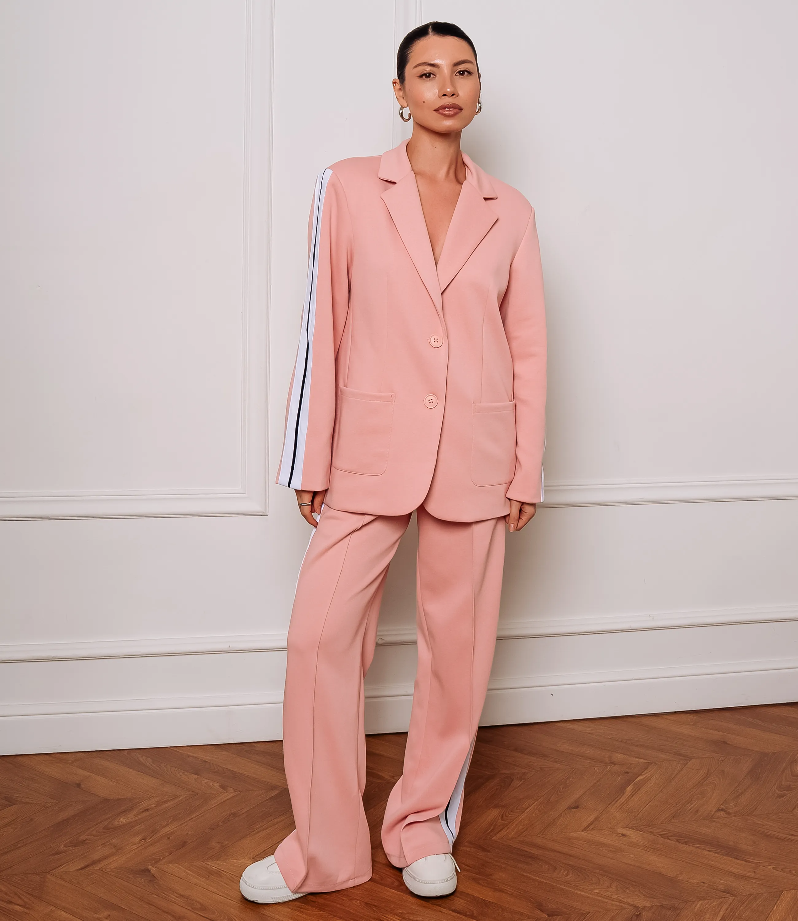 Костюм – это одежда, которая подчеркивает стиль и комфорт каждой женщины. Костюм жакета свободного прямого кроя с мягкими лацканами и длинными рукавами, на каждом рукаве проходит декоративная полоска в виде двойной контрастной вставки, начинающаяся от плеча и доходящая до манжеты; нагрудная часть жакета с ровной линией плеча, застёжка на одну крупную пуговицу, две накладные карманы средней глубины расположены на уровне бёдер. Брюки свободного прямого силуэта с высокой или средней линией талии, пояс без широкого пояса. Для изготовления использованы ткани 90% полиэстер и 10% хлопок, который характеризуются отличным качеством и дышащими свойствами. Даже после множества стирок изделие не утратит первоначальной красоты. Вы будете носить его с радостью. Обратите внимание на цвет. Он полностью соответствуют фотографии на сайте. Чтобы вы были уверены в размере, мы представили на странице таблицу. Воспользовавшись ею, вы сможете сами обмерить себя и удостовериться. Установленная нами цена является приемлемой. Не откажите себе в удовольствии быть стильной и комфортной! Рост модели 164, 83-61-89. Вы можете заказать онлайн презентацию на интересующие Вас модели. Наши менеджеры свяжутся с Вами и проведут индивидуальную видеотрансляцию, помогут составить заказ и ответят на Ваши вопросы.