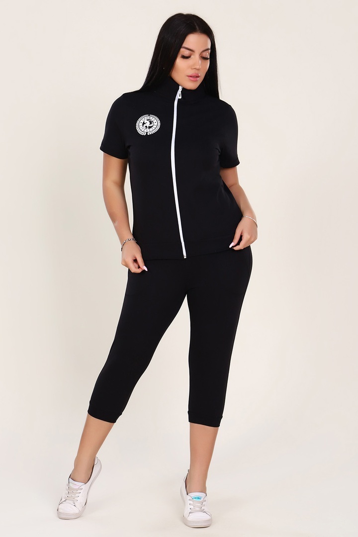 Костюм - олимпийка без рукавов + бриджи - 44 - черный