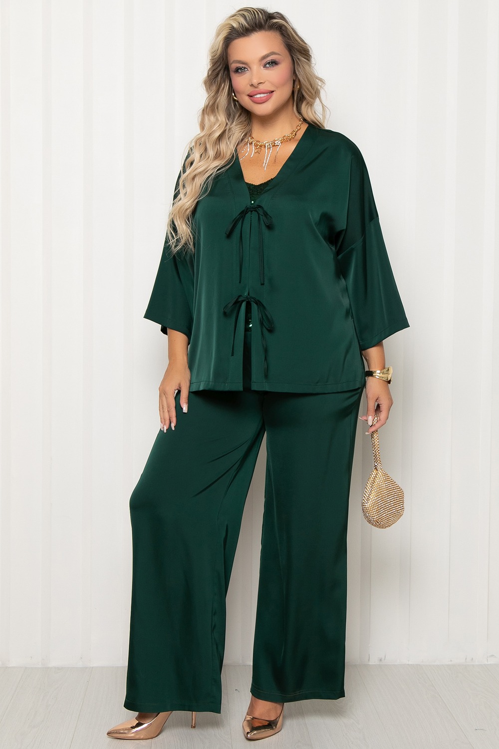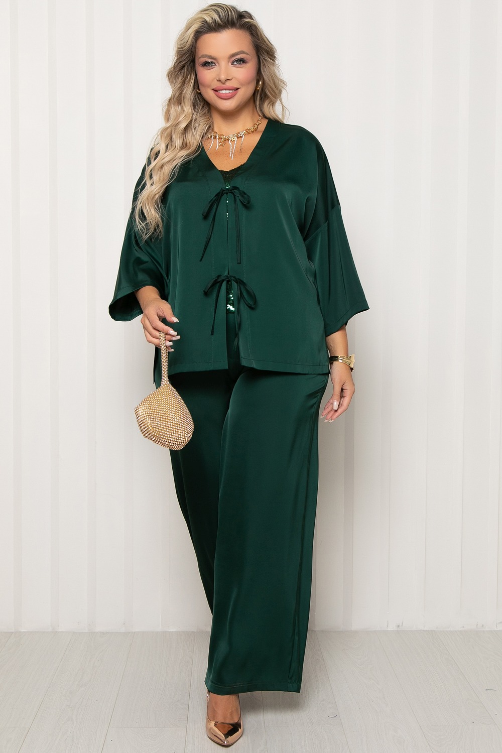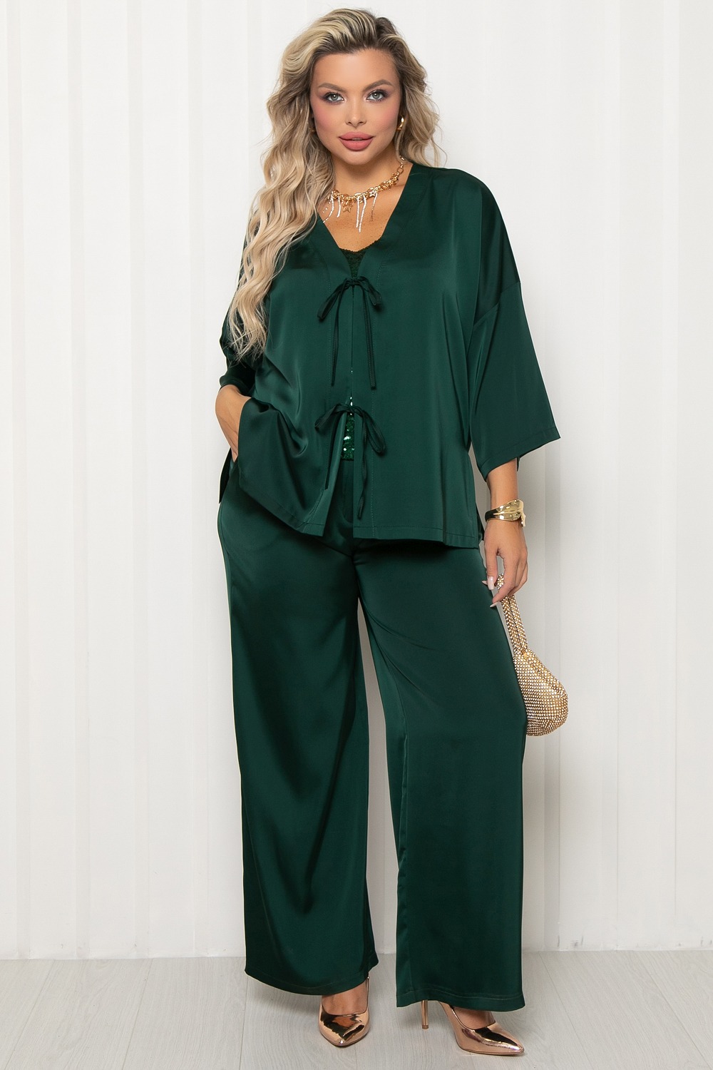 Брючный костюм двойка, состоящий из блузки и брюк из шелка.