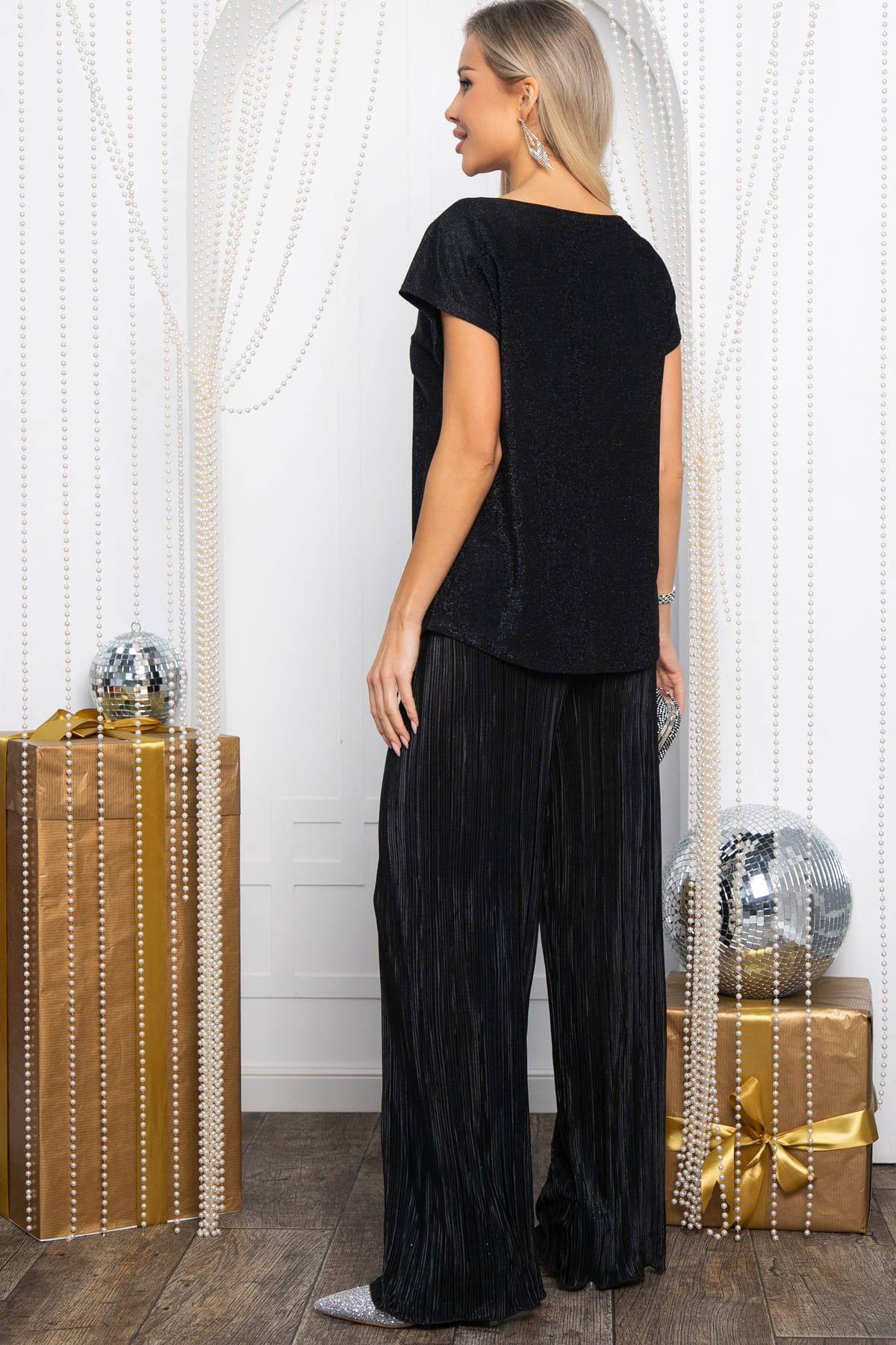 Этот комплект сочетает в себе превосходный стиль и удобство, обеспечивая вам безупречный облик на любом мероприятии. Костюм включает в себя мерцающую блузу и брюки на резинке из красивой ткани гофре. Стильная и изысканная блуза без рукавов, обязательно привлечет внимание своим утонченным дизайном и практичностью, в сочетании с широкими брюками и вечернего стиля создает элегантный и модный вид, который подходит как для официальных мероприятий, так и для повседневных прогулок. Создан, чтобы вы выглядели и чувствовали себя на высоте в любое время года и в любой ситуации!