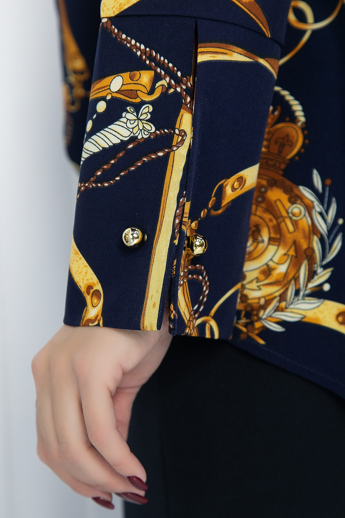 Декоративные элементы:застежка на рукавах в виде иглы.