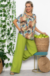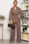 Костюм состоит из футболки-поло и широких брюк. Поло — это действительно универсальный элемент гардероба, который сочетает в себе стиль и комфорт. Ее можно носить в самых разных ситуациях, от повседневных прогулок до более формальных мероприятий. Благодаря своей универсальности, футболка-поло легко комбинируется с различными предметами одежды. Широкие брюки делают образ элегантным, визуально вытягивают силуэт. Оригинальная модель идеально сидит на фигуре любого типа благодаря завышенной линии талии, ростовка брюк рассчитана таким образом, чтобы брюки подходили как для высоких девушек, так и для невысоких. Приталенный силуэт (не оверсайз), красивая форма. С такой моделью брюк можно легко составить множество повседневных образов: в школу, на работу и деловую встречу. А также нарядные образы: на день рождения, на прогулку по городу с друзьями. Брюки подойдут на осень, весну и как зимний и летний универсальный вариант.