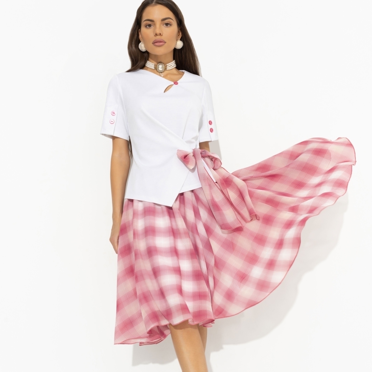 Костюм с юбкой комбинированный, Больше чем стиль (2 в 1, воздушно-розовый)