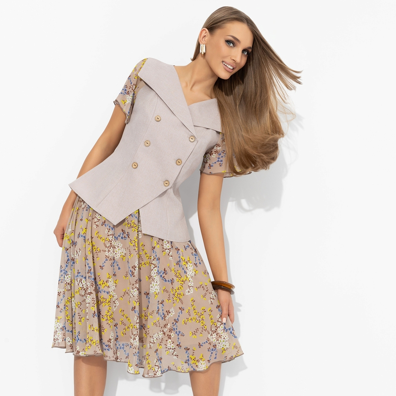 Костюм с юбкой комбинированный, Сияние уверенности ( 2 в 1, бежевый)