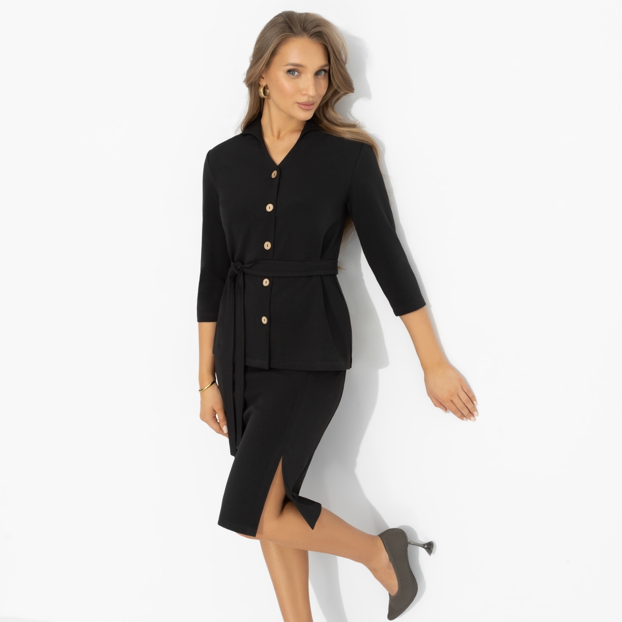 Уверенность не говорит о себе вслух – ее считывают по осанке, походке и тому, как на вас сидит одежда. Комплект «Гордая и дикая» создан для тех, кто точно знает себе цену, и позволяет миру это заметить. Спокойно и без лишних слов. Костюм 2 в 1 от ЧАРУТТИ: жакет полуприлегающего силуэта с поясом подчеркивает талию + юбка миди по фигуре. Образ для комфорта и уверенности в течение всего дня.