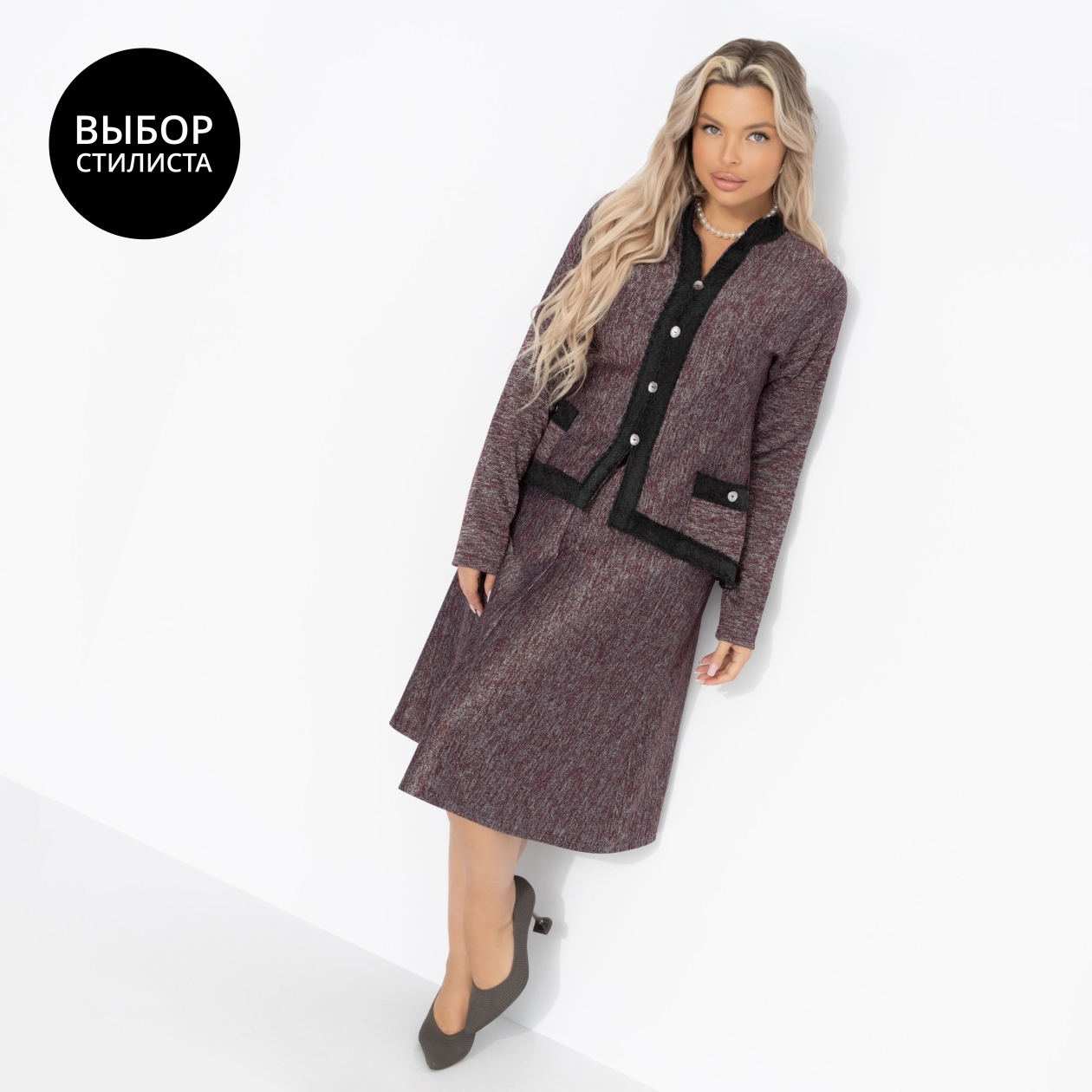 Костюм с юбкой в стиле Шанель, С безупречным вкусом (2 в 1, винный)