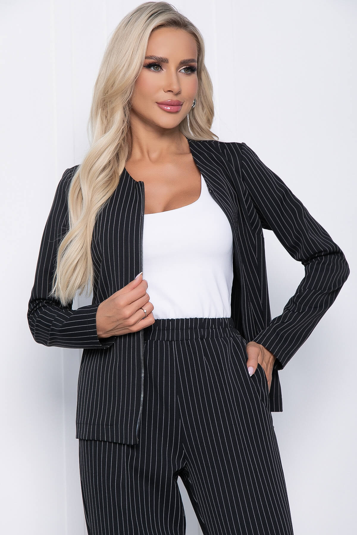 Брючный костюм в полоску — воплощение современного стиля и классической элегантности. Костюм выполнен из приятной на ощупь костюмной ткани, обеспечивая комфорт и удобство в носке на протяжении всего дня. Стильный жакет и брюки в полоску создают гармоничный комплект, подходящий как для офисной среды, так и для более расслабленных мероприятий. Данный костюм станет универсальной частью вашего гардероба, позволяя выглядеть безупречно в любой ситуации, от деловой встречи до прогулки по городу. Идеальный выбор для тех, кто ценит удобство и стиль в каждой детали.