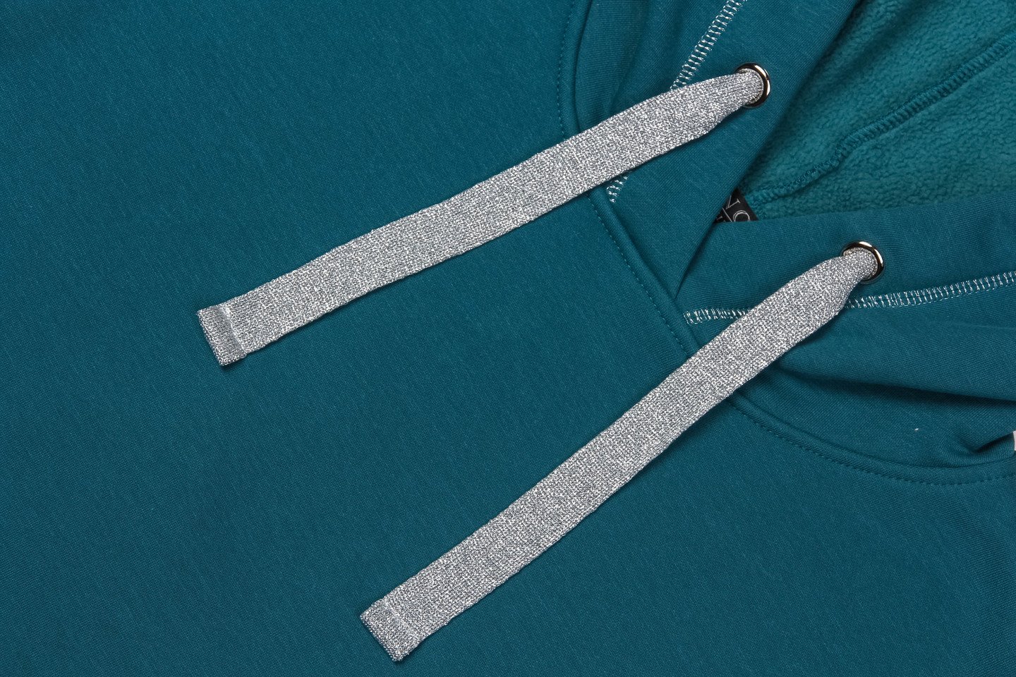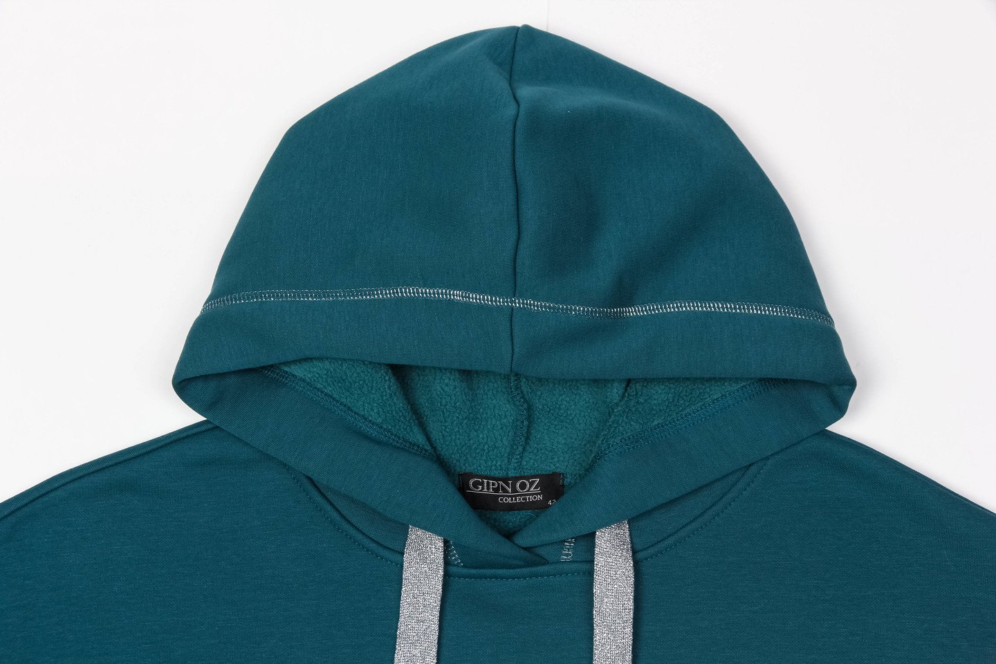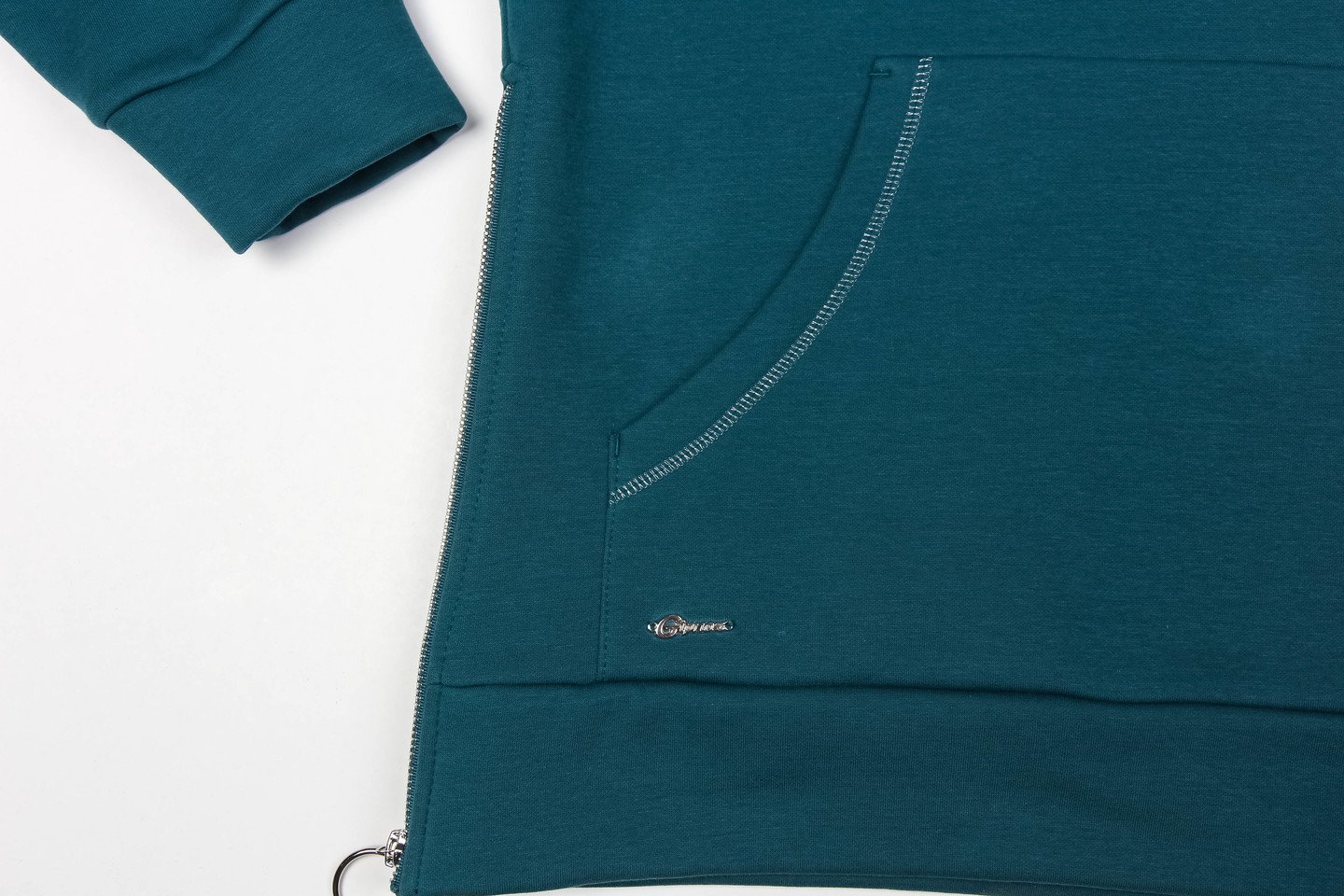 Это ещё один трендовый комплект, который выручит в любой ситуации. Спортивный и в то же время женственный костюм. С боков украшен металлическими молниями. На переде изделия карман. Брючки на резинке по поясу и по низу. На бедрах карманы. В капюшон вставлена серебристая тесьма. Трикотаж утепленный на флисе, состав: 75% хлопок, 20% полиэстер, 5 % спандекс.