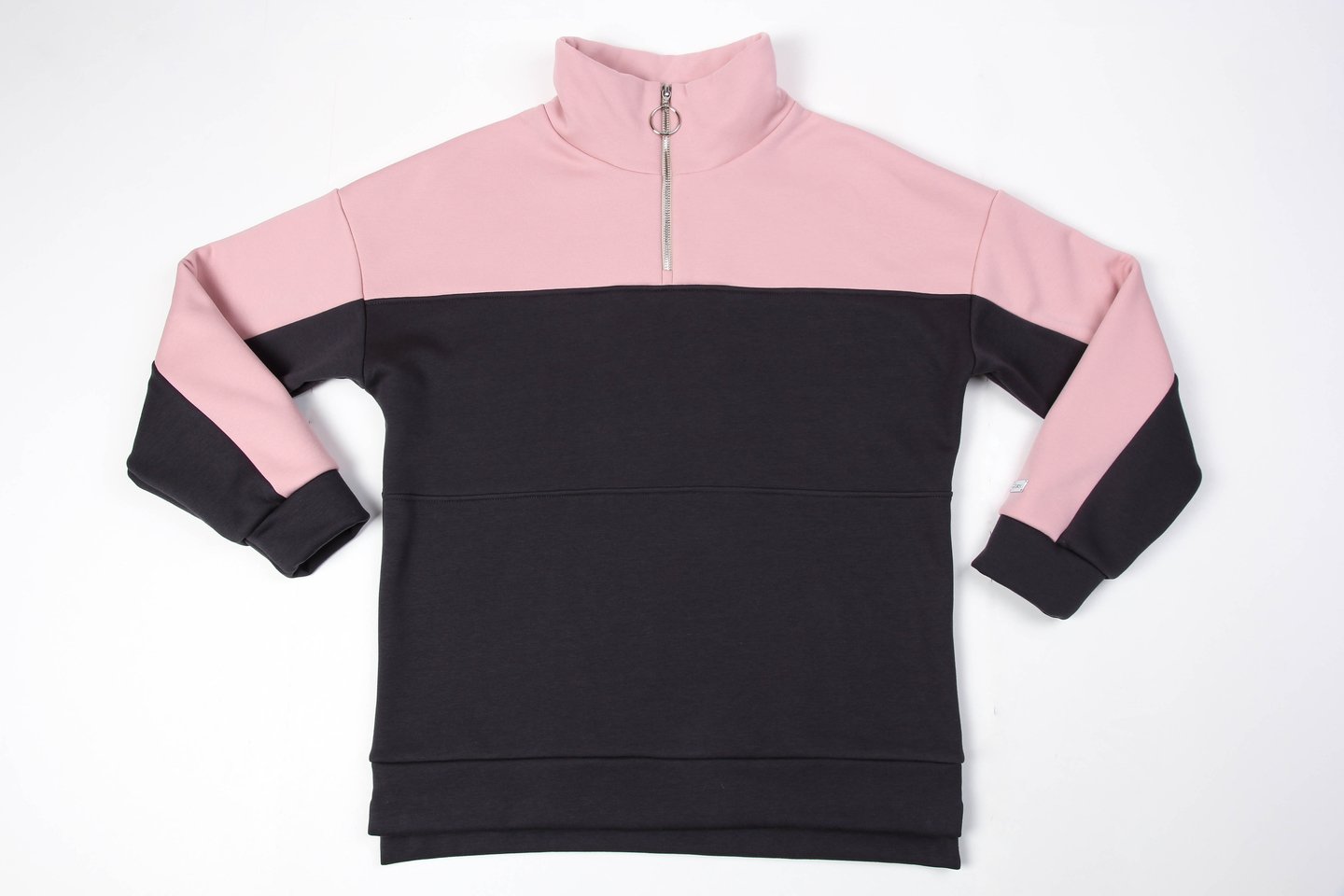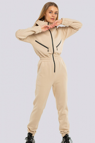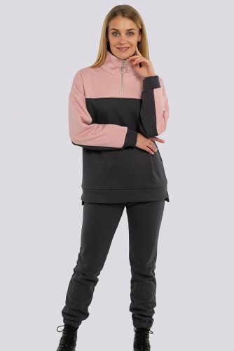 Теплый женский костюм - это один из главных трендов сезона. Модели с контрастными сочетаниям оттенков являются наиболее актуальными в этом сезоне. Уютная толстовка «оверсайз» с воротником-стойкой и короткой «молнией». Низ толстовки обработан поясом, рукава на манжетах. На поясе толстовки по бокам разрезы, на левом рукаве пришивной металлический декор. Брюки с боковыми карманами, пояс и низ брюк на резинке. Трикотаж утепленный на флисе, состав: 75% хлопок, 20% полиэстер, 5% спандекс.