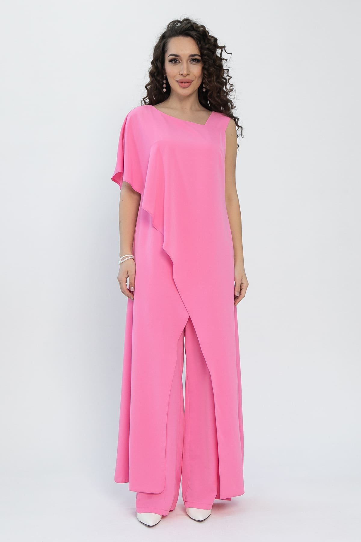 Восхитительный костюм-двойка — идеальный вариант для торжественных событий: выпускного, корпоратива, дня рождения или романтического вечера. Брюки свободного кроя на резинке обеспечивают комфорт, а легкая накидка добавляет образу элегантности. В этом костюме вы будете выглядеть безупречно и чувствовать себя уверенно в любой ситуации, создавая неповторимый стиль.