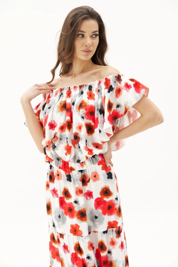 Летний сезон - это всегда романтика, приключения, игривое настроение и мир моды погружает нас в это состояние, радуя очередными новинками.Невероятно комфортный, лёгкий вискозный комплект с юбкой и блузой.Юбка А-образного силуэта, состоит из трёх горизонтальных воланов с лёгкой сборкой и на эластичном поясе.Блуза свободная с вертикальными рельефами, рукавом- крылышко, эластичными буфами по линии горловины и эластичной тесьмой по низу.Длина юбки около 90 см. Длина блузы около 52 см.Длина рукава около 15 см.