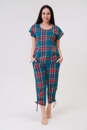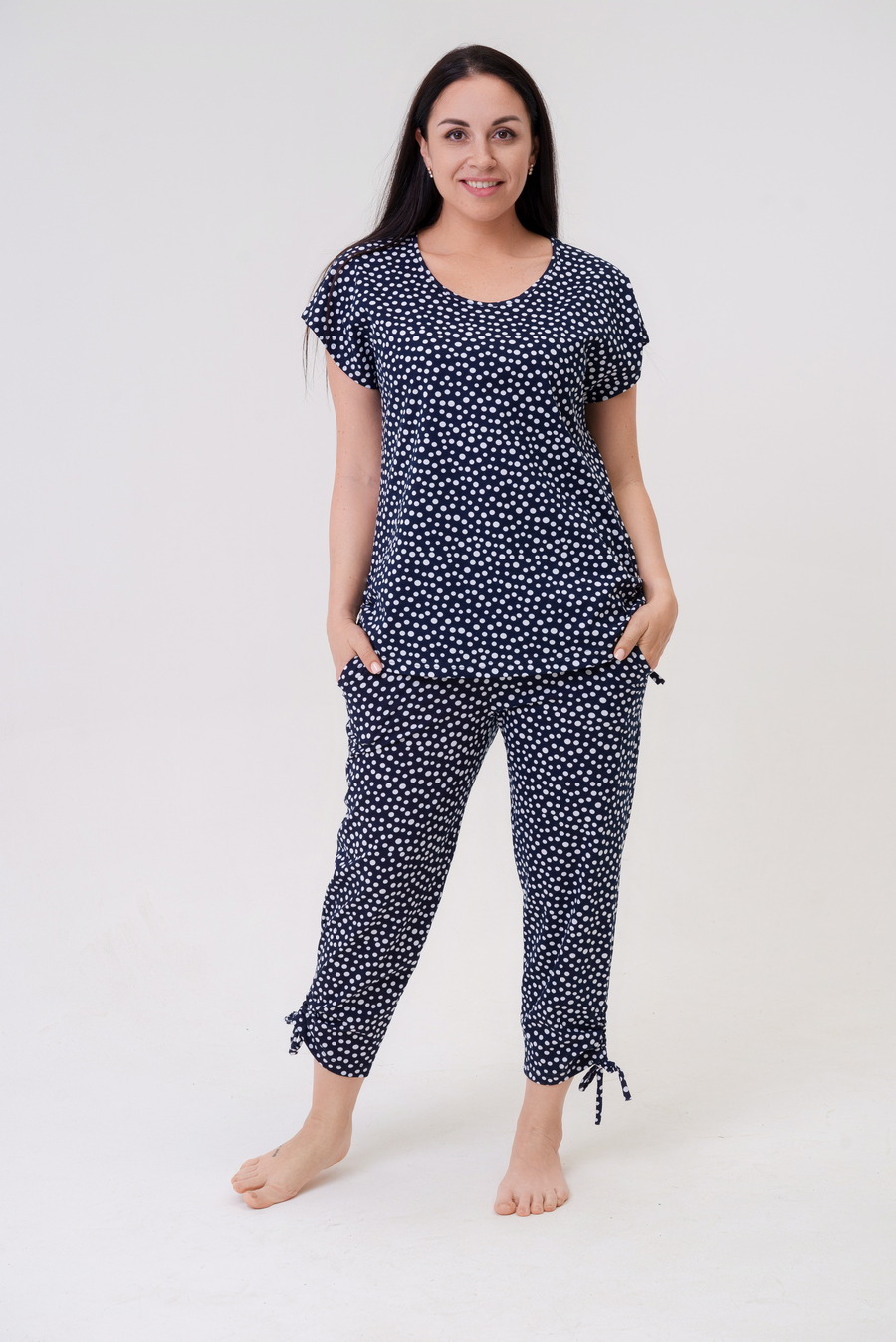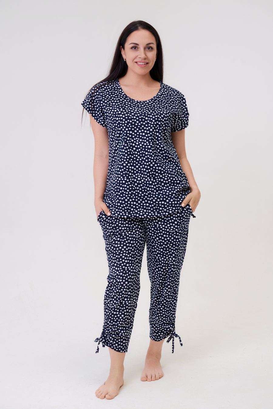 Костюм женский из футболки и брюк из кулирки "Крым" горошек темно-синий