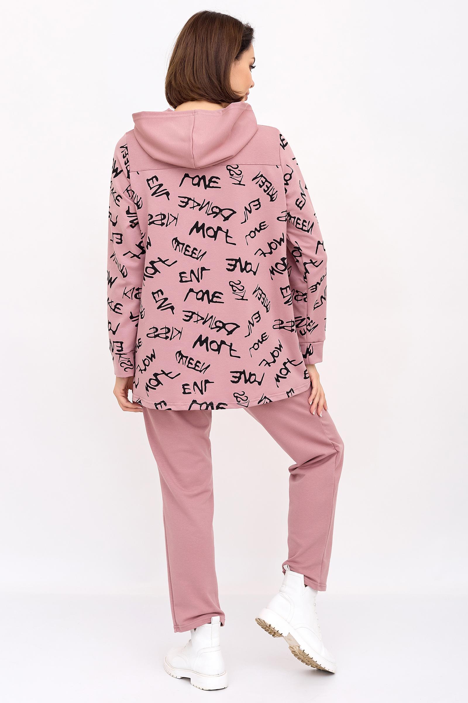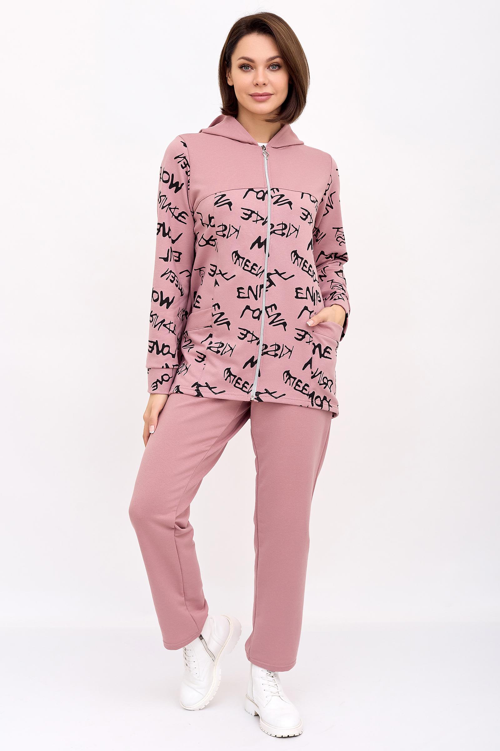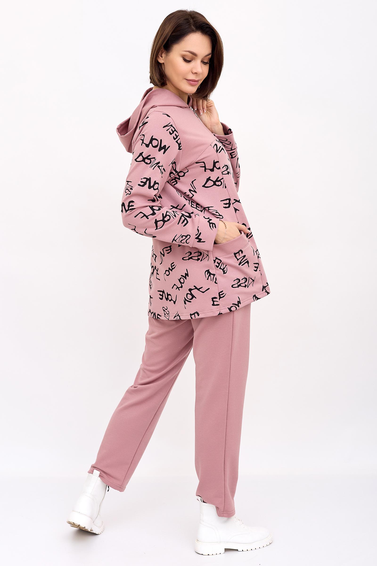 Костюм, в который можно влюбиться с первого взгляда. Сам костюм очень удобен и комфортен для ношения. Куртка прямого кроя с карманами, капюшоном и застёжкой на молнию. Основание куртки с рисунком, а кокетка и капюшон выполнены из однотонной ткани. Брюки прямые, в однотонном цвете. Удобную посадку изделия обеспечивает поясная резинка. Прекрасный костюм для дома, отдыха или спорта.