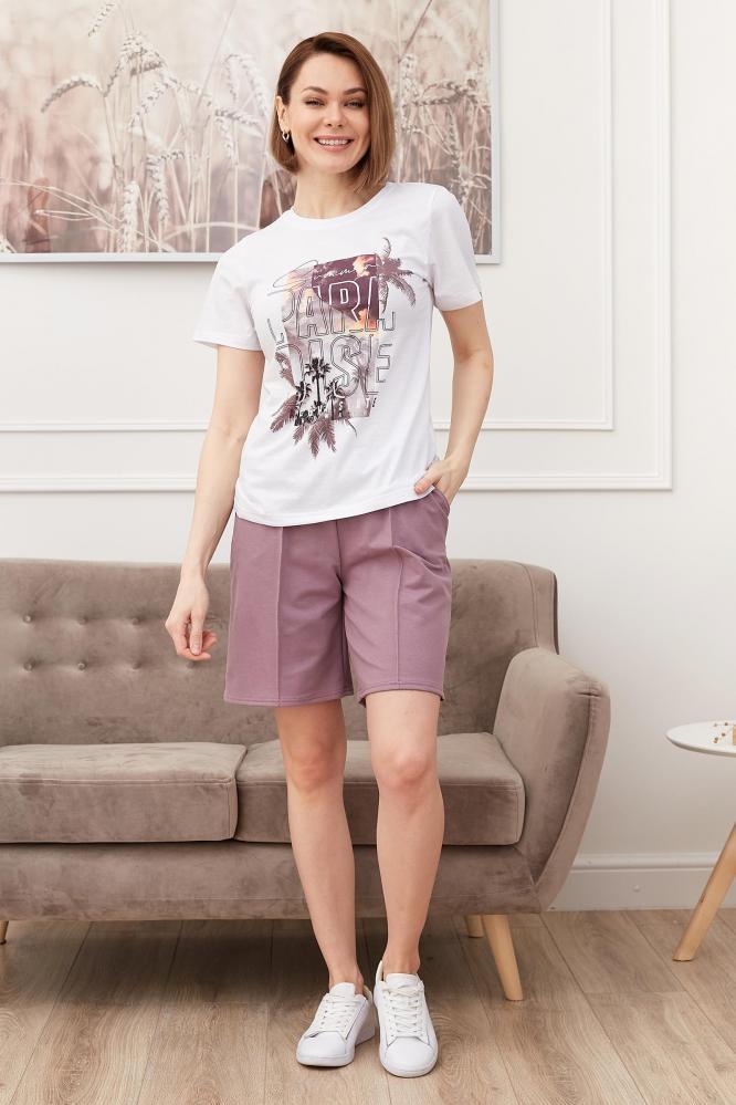 маломерит на размер. на 44 взяла 46. Сидит не свободнее, чем на фото производителя. Шорты отличные, а футболка смотрится дешево из-за качества материала и обработки горловины. в 46 размере пришел цвет розовый (пыльной розы)