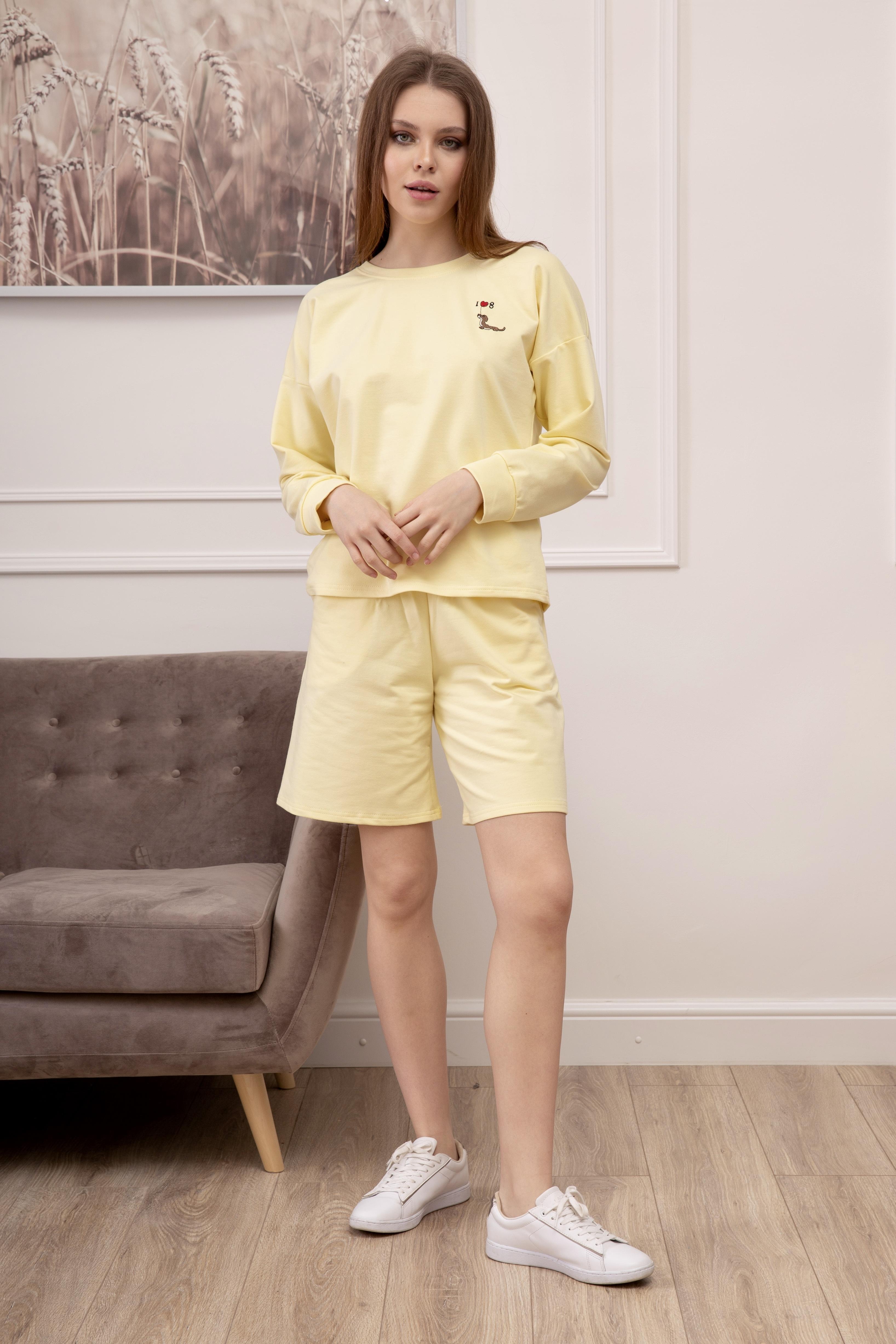 Модный женский костюм Таша состоит из свободной футболки и шорт из футера 2х ниточного. Женская футболка и шорты имеют прямой свободный силует, подходящий девушкам, женщинам и подросткам. Идеально садится на высоких и маленьких ростом девушек. Домашний костюм с шортами не захочется снимать, настолько он комфортный. Классный вариант для прогулок, в отпуск или поездок на море.