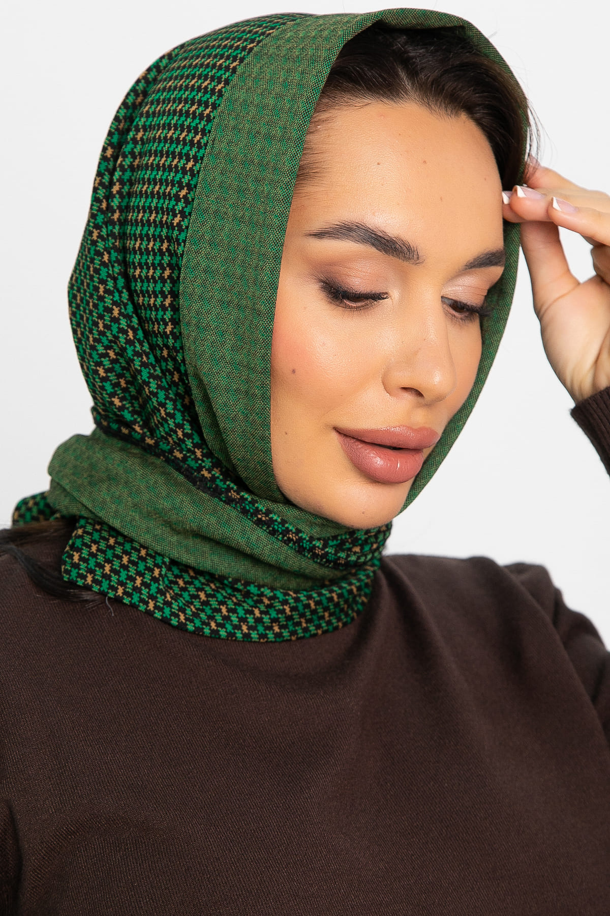 Косынка с отворотом (зелено-бежевая) КО18-23М