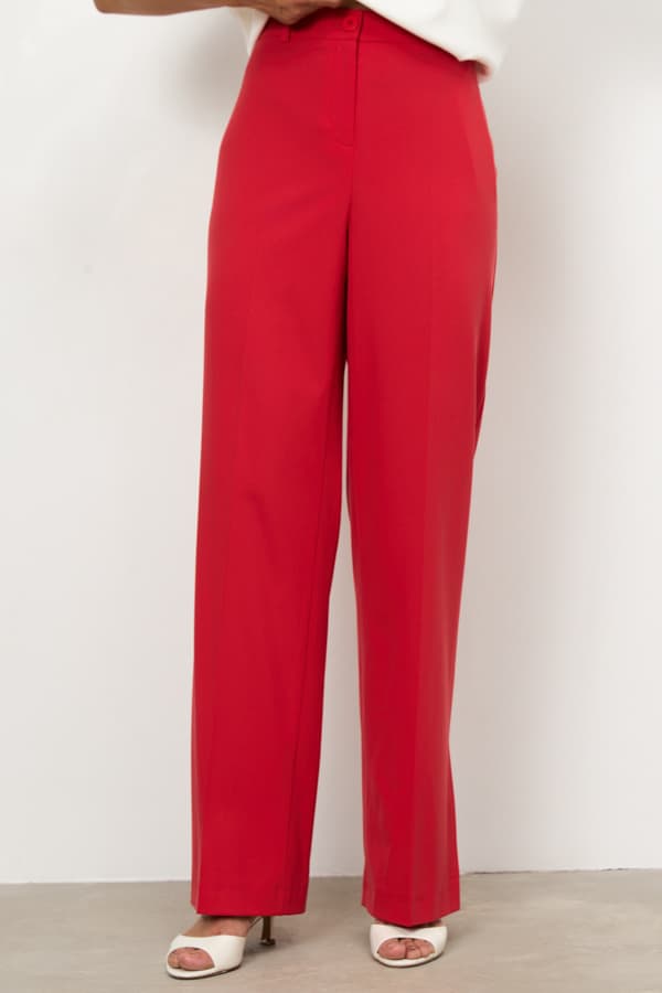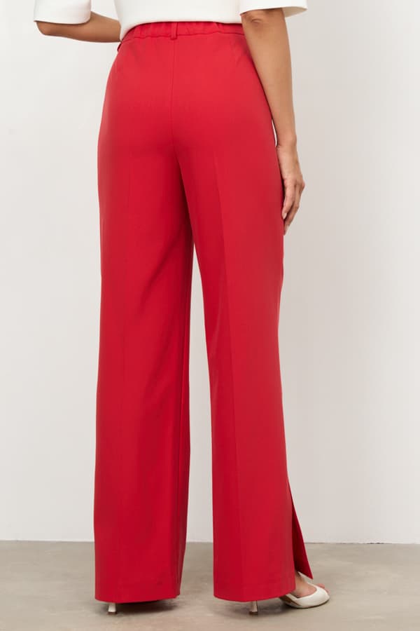 Брюки из костюмной ткани прямого силуэта с разрезами в боковых швах. Застёжка на молнию-гульфик и пуговицу. Притачной пояс со шлёвками. Задняя часть пояса с резинкой, что обеспечивает хорошую посадку по фигуре.