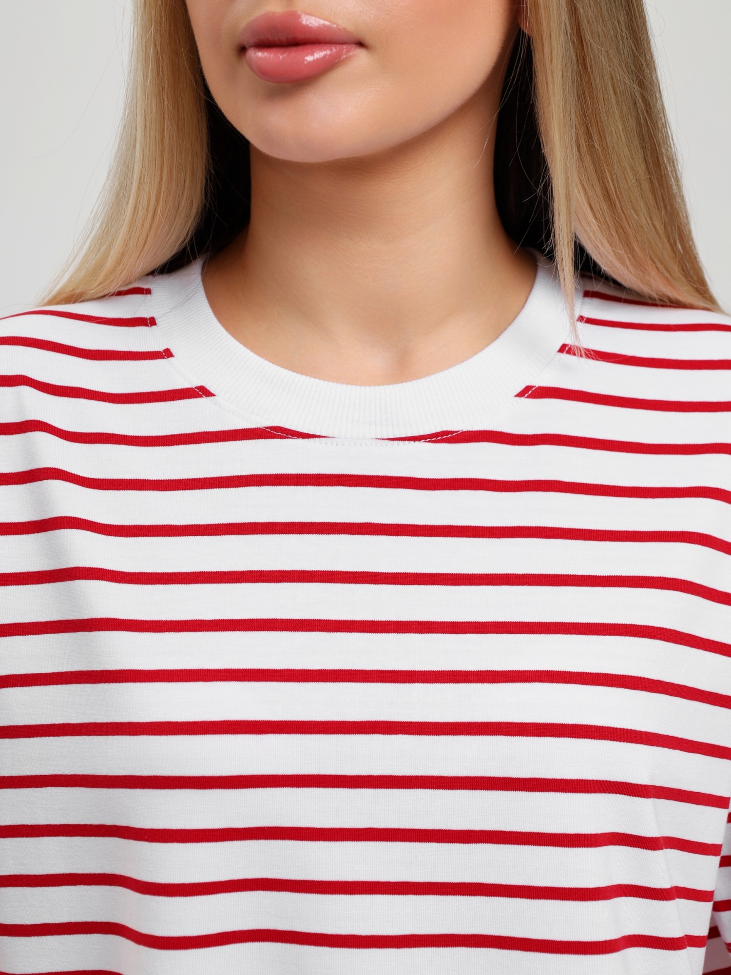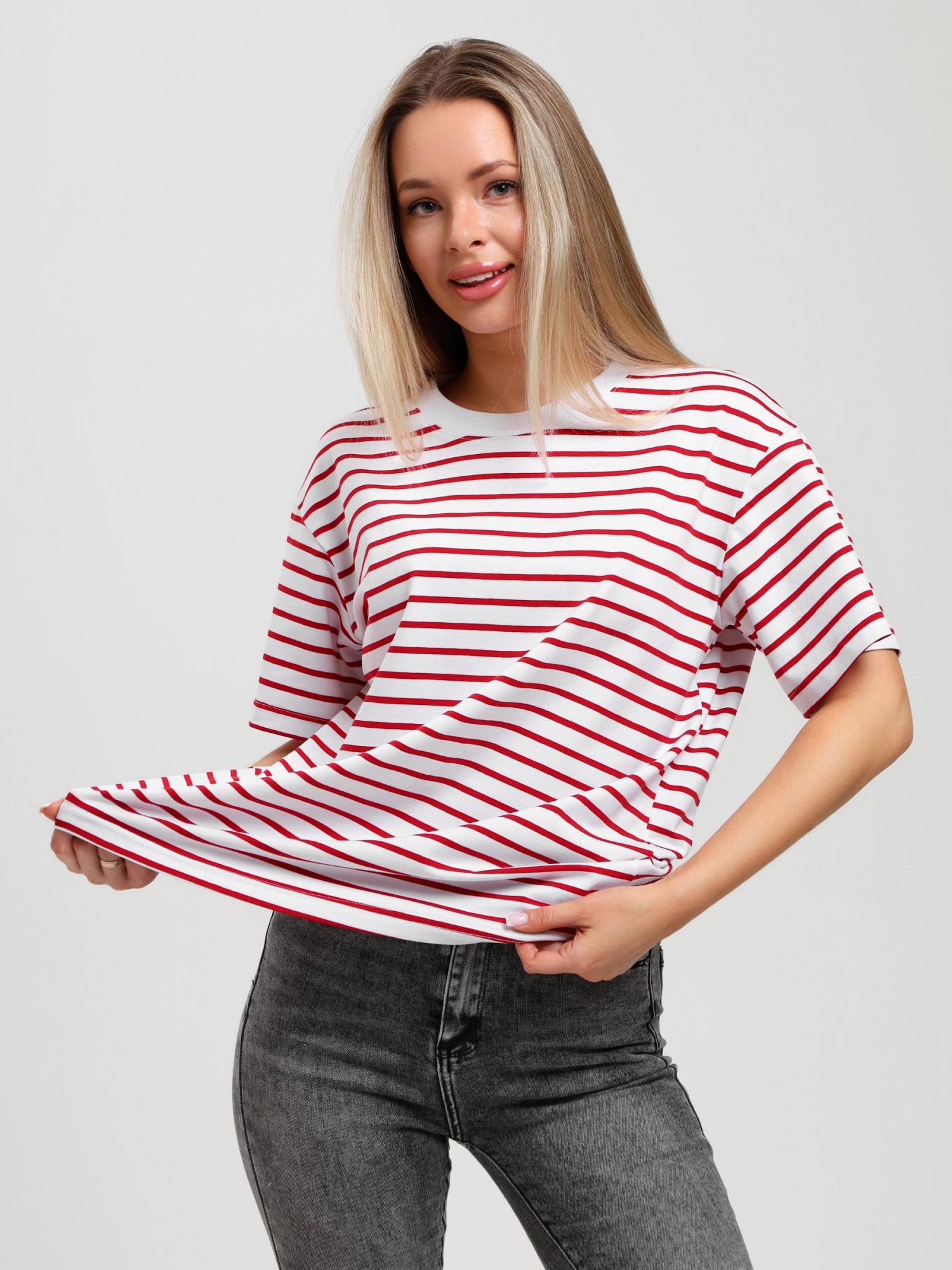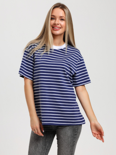 Футболка молодежная из трикотажного полотна "кулирка" с лайкрой с набивным рисунком "полоса", классического покроя, с короткими втачными рукавами и горловиной овальной формы, обработанной втачной планкой из контрастного трикотажного полотна «рибана».