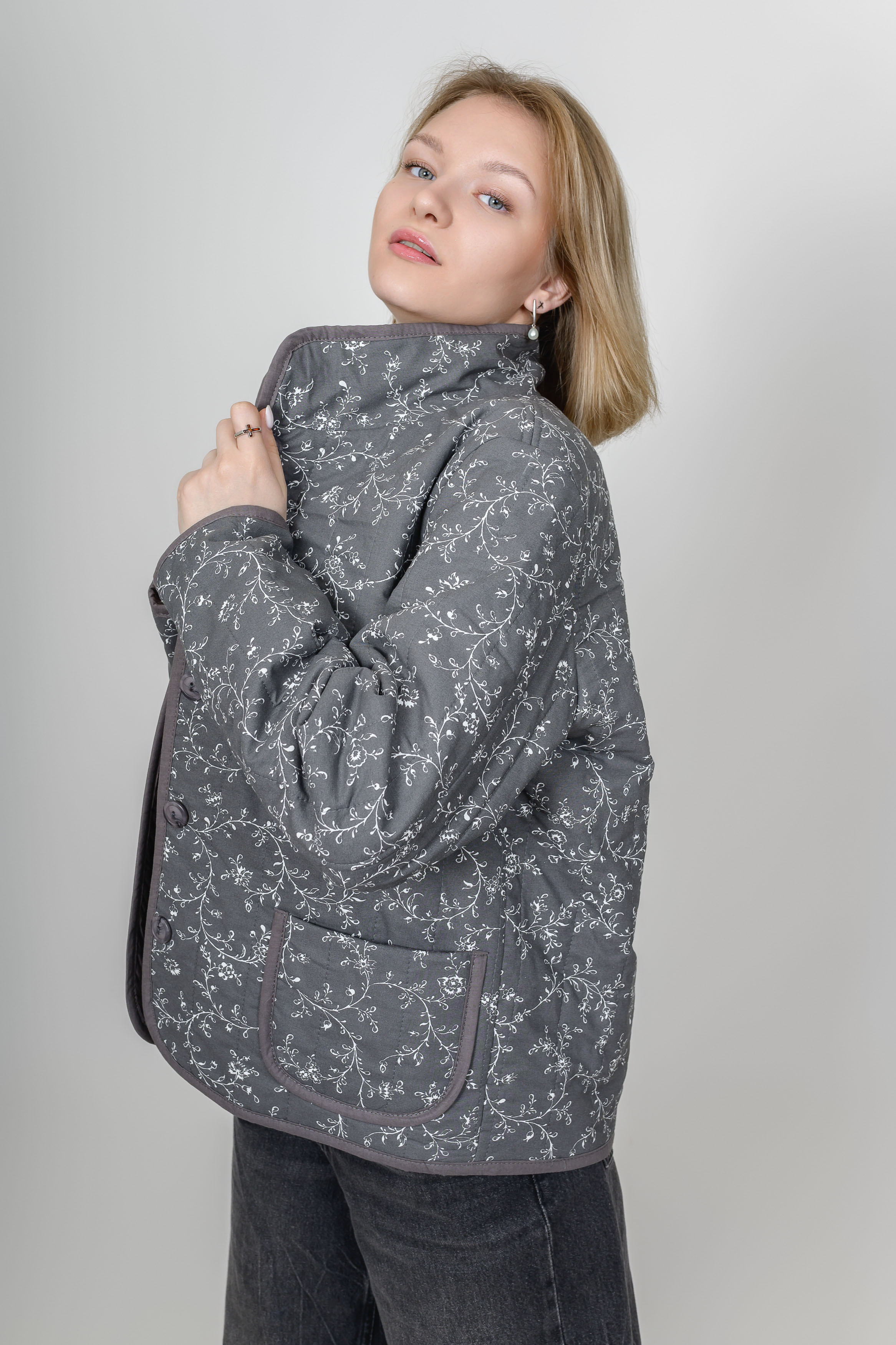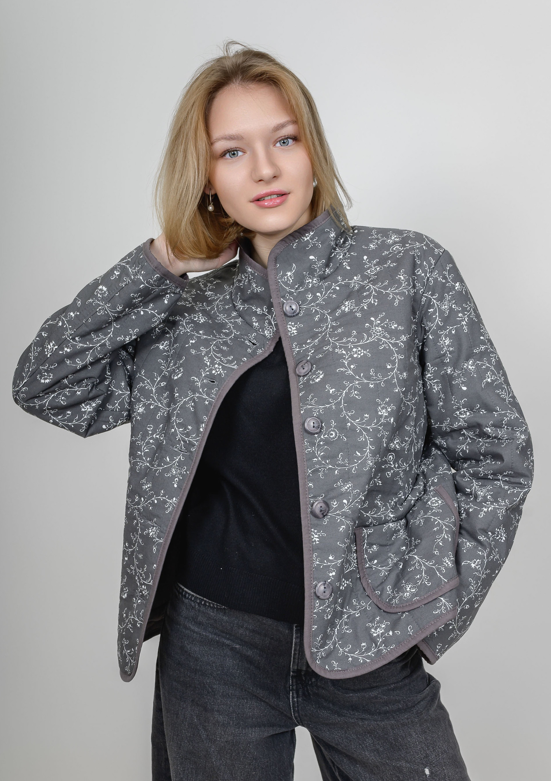 Легкая и уютная классическая куртка на натуральном утеплителе (100% хлопок). Верх и подкладка выполнены из хлопковой ткани премиум качества.  Изделие отлично стирается в домашних условиях, не прихотливо и в дальнейшем уходе. Прямой силуэт и крой с нагрудной вытачкой (размеры 52, 54, 56, 58) обеспечивают отличную посадку на фигуре любого типа.