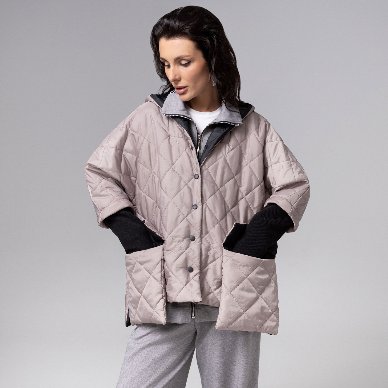 Состав: Курточная стежка на синтепоне, плащёвка, трикотаж «дженифер» (100% п/э)