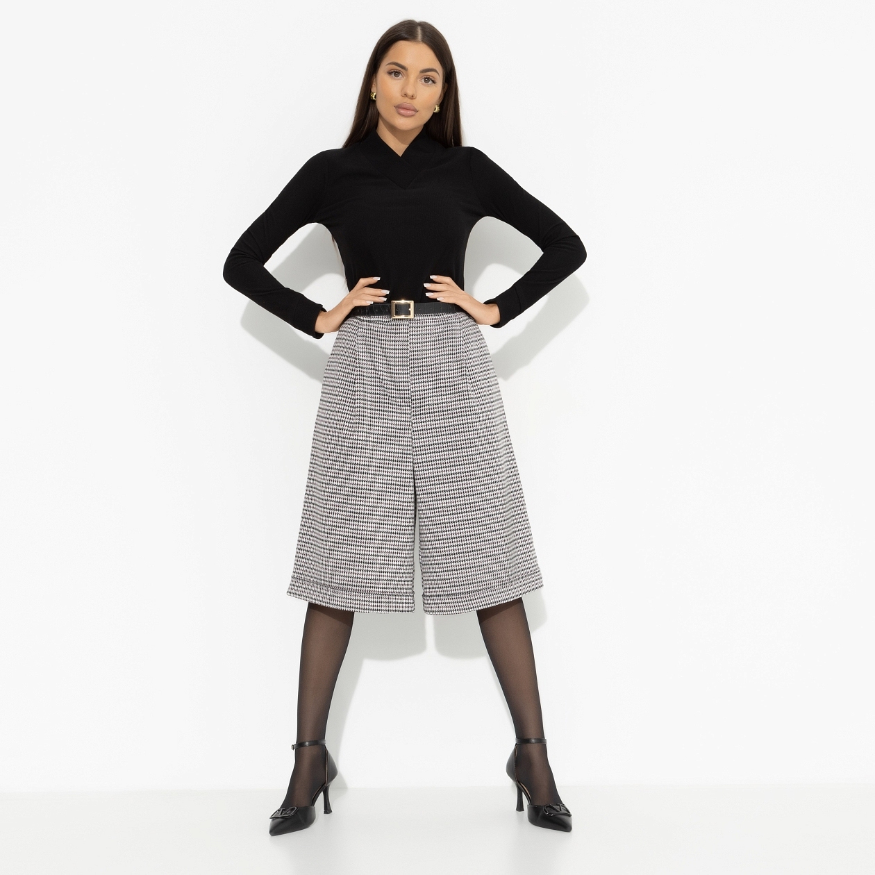 Кюлоты с высокой посадкой «Неожиданный подарок (new)» из трикотажа «жаккард» — это идеальный выбор для тех, кто ценит стиль, комфорт и универсальность. Эти кюлоты, которые можно приобрести оптом, представляют собой гармоничное сочетание модного дизайна и функциональности. Имея широкие отвороты и высокую посадку, они подчеркивают фигуру и добавляют элегантности любому образу. Для практичности предусмотрены удобные карманы, а застежка на молнию и пуговицу обеспечивает надежную фиксацию. Эти кюлоты станут отличным дополнением к гардеробу, позволяя создать множество стильных луков — от повседневных до деловых.