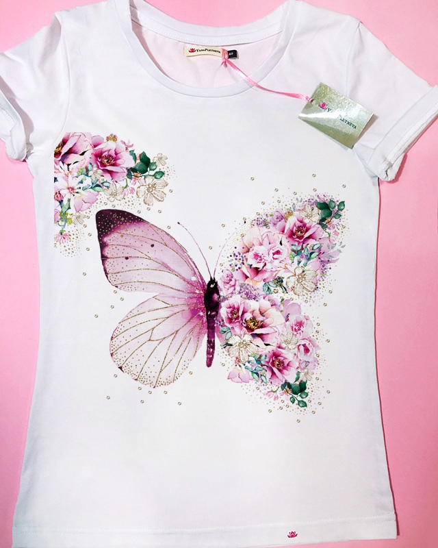 Никаких наклеек, аппликаций и т.п. мы не используем, только фирменная печать с эффектом живого изображения, яркими красками,стойкими к выгоранию и стирке.