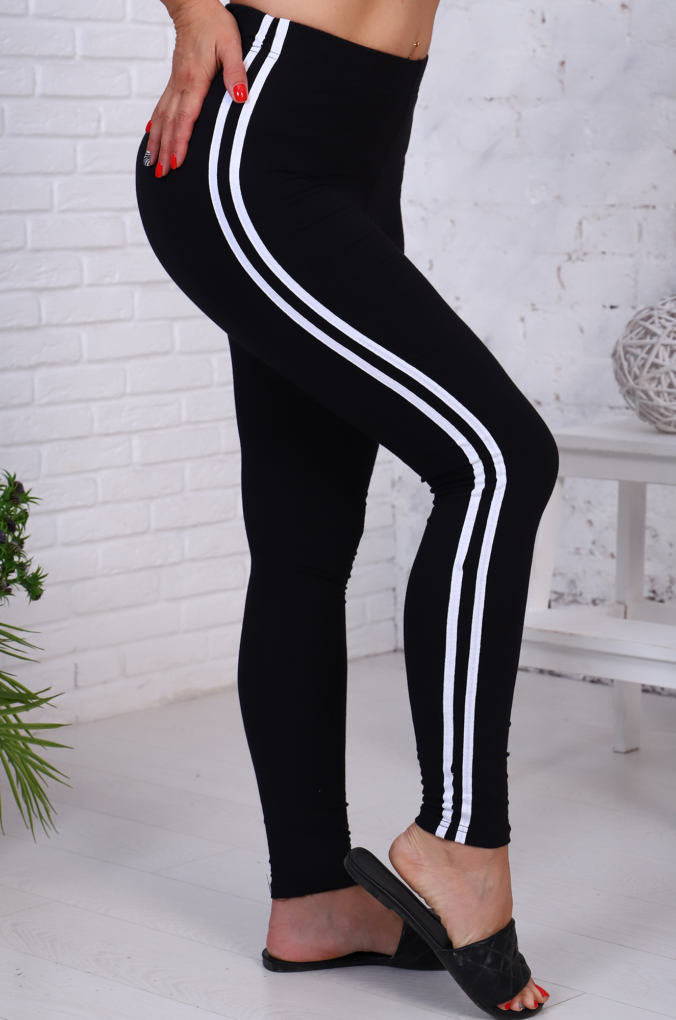 Базовая модель в гардеробе современных женщин - эластичные хлопковые леггинсы с лампасами. Они удобные, хорошо облегают ножку и не стесняют движений. Идеальный вариант для занятий спортом, для пробежки, прогулки или как домашняя одежда. Модель отлично сочетается с кроп-топом, футболкой, майкой, толстовкой, свитшотом и худи.