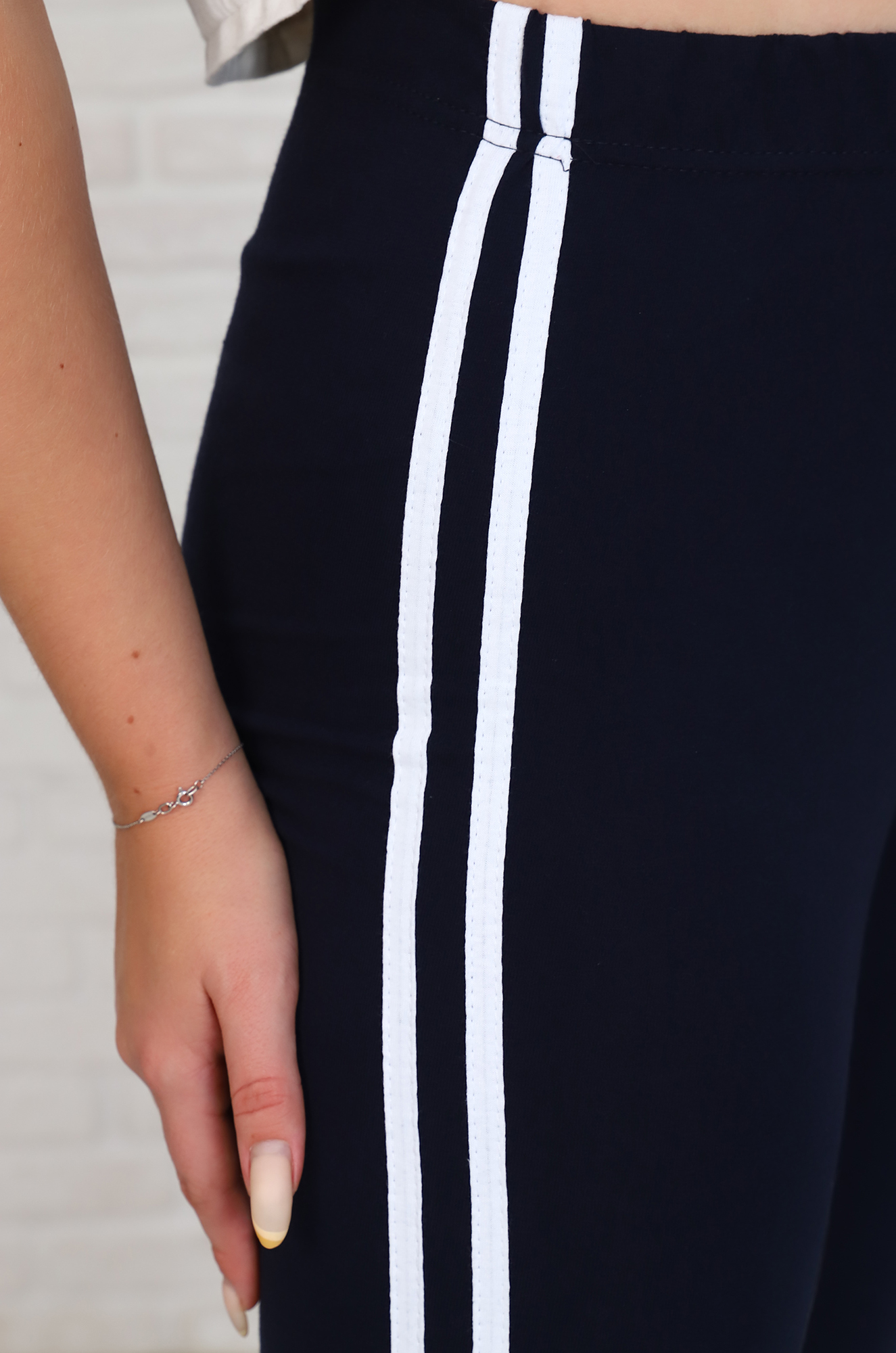 Леггинсы с лампасами, лайкра (тёмно-синий)