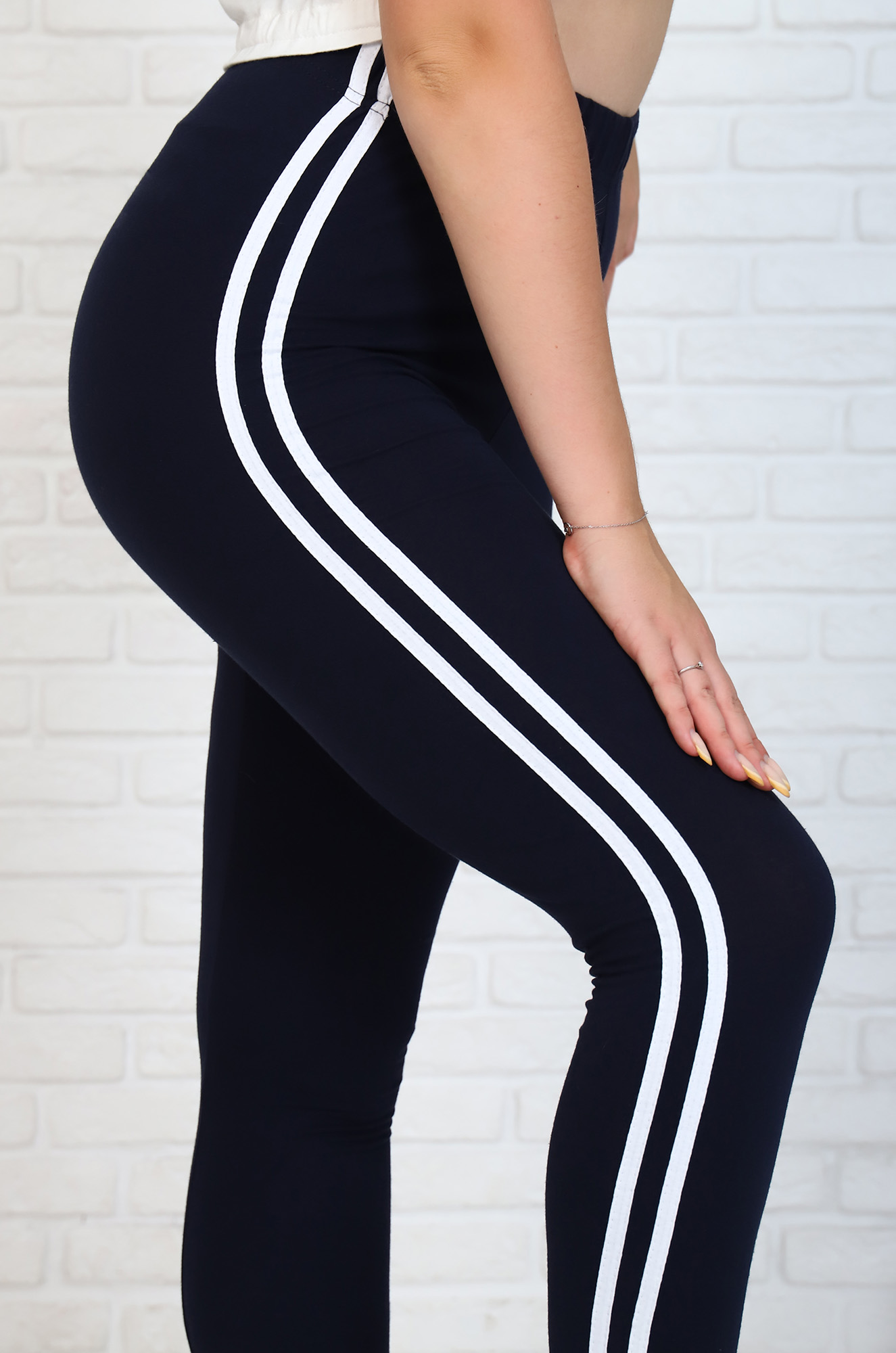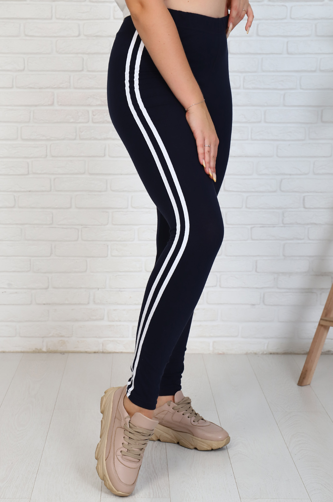 Базовая модель в гардеробе современных женщин - эластичные хлопковые леггинсы с лампасами. Они удобные, хорошо облегают ножку и не стесняют движений. Идеальный вариант для занятий спортом, для пробежки, прогулки или как домашняя одежда. Модель отлично сочетается с кроп-топом, футболкой, майкой, толстовкой, свитшотом и худи.