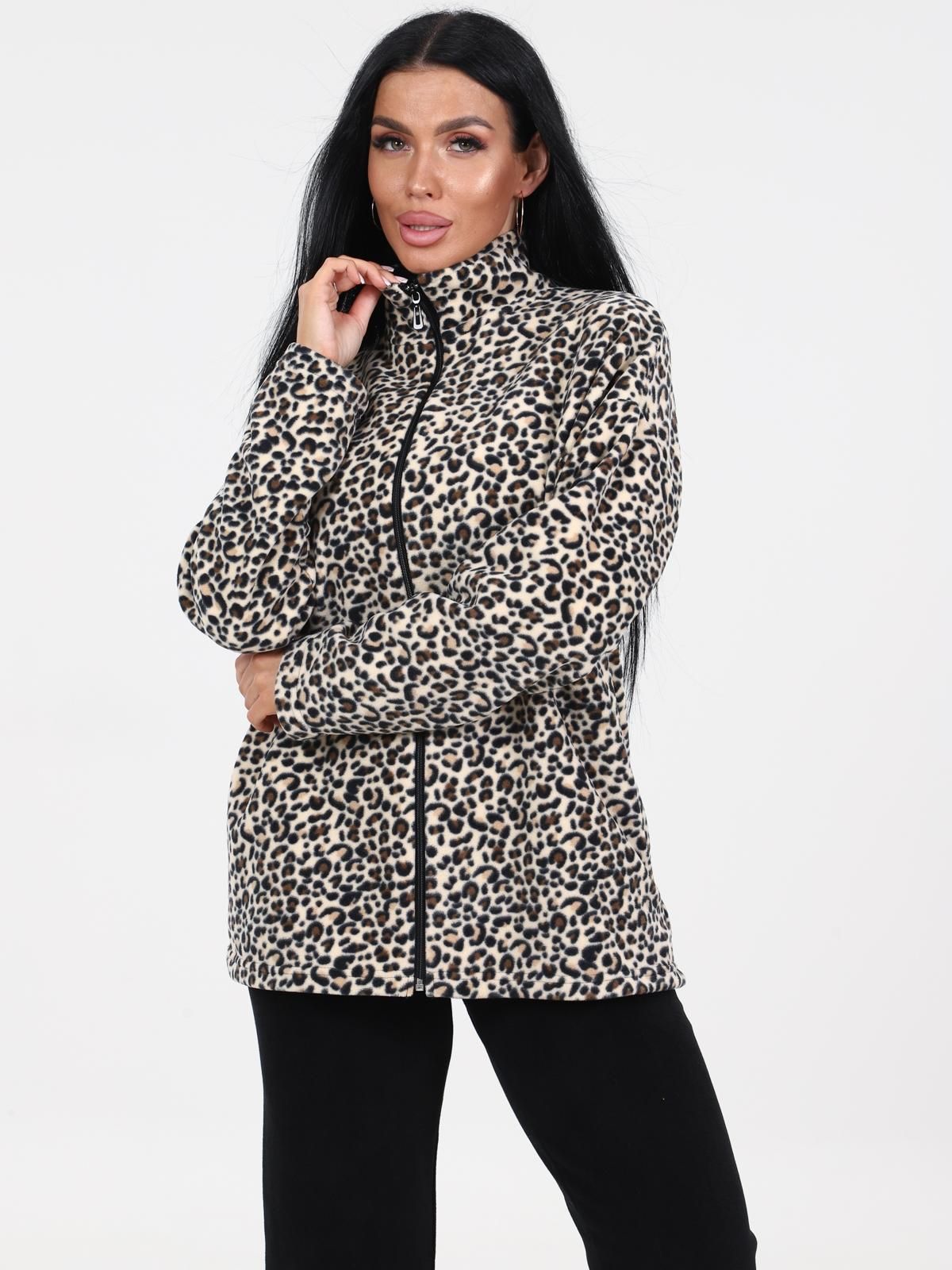 Женский костюм состоит из кофты и брюк. Брюки длинные прямые. Кофта со спущенной линией плеча на молнии с воротником стойкой . Рукав длинный. В боковых швах карманы.