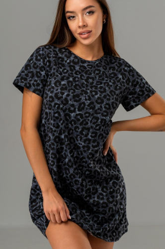 Повседневное домашнее платье с анималистичным рисунком варенка выполнено из нежного, приятного к телу 100% хлопка. Трикотажная ткань кулирная гладь хорошо пропускает воздух. Хлопковый трикотаж мягкий и приятный к телу. Короткая туника с вареным эффектом идеальна для образов на лето.