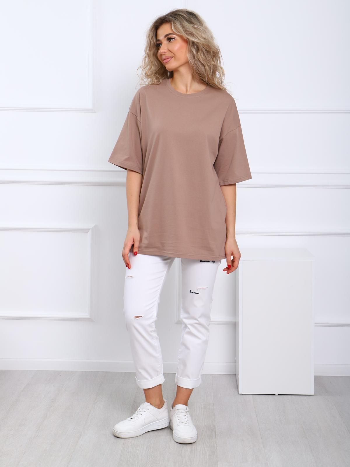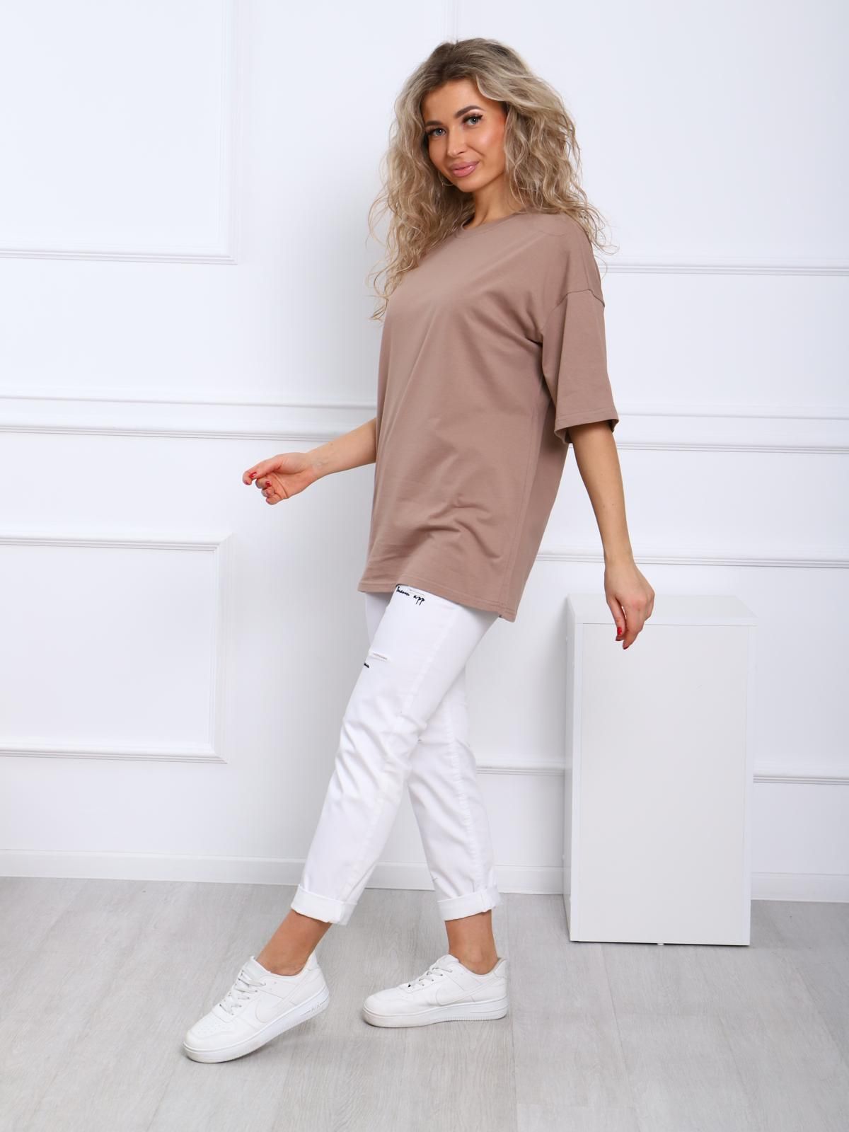 Стильная футболка прямого кроя оверсайз - воплощение свободы, естественности и смелости. Наша футболка не сковывает движений, отлично садится на любой тип фигуры и, благодаря прямому крою, подойдёт беременным девушкам. Спущенное плечо, укороченный рукав, круглая горловина и дышащая ткань, которая отлично проводит воздух, позволят чувствовать удобство при любых обстоятельствах. Прогулки, отдых, путешествия - базовая модель футболки подойдет на каждый день. Футболка совмещает в себе стиль и комфорт.