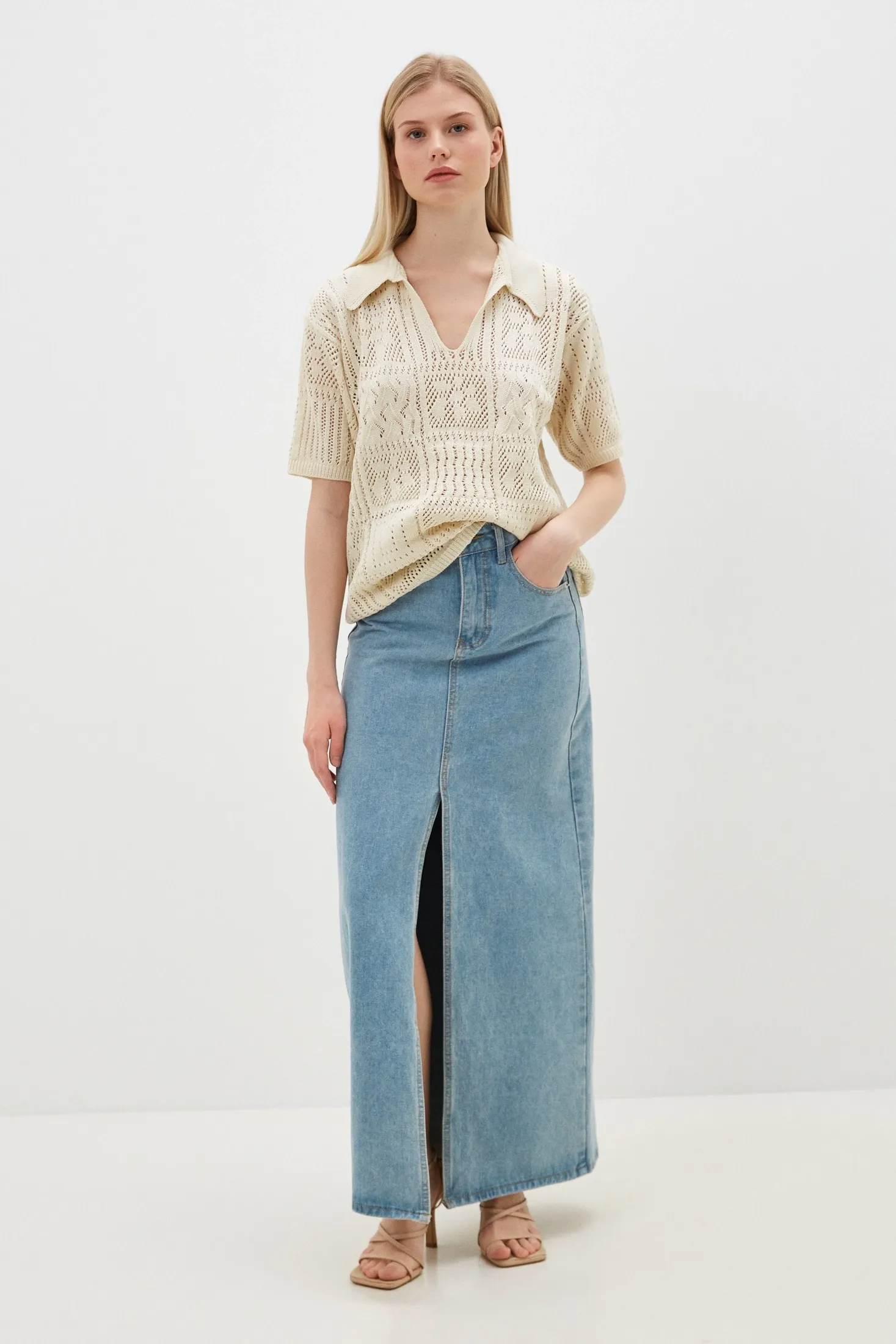 Модная и элегантная футболка Мариана выполнена в ажурной вязке. Отложной воротничек, рукав три четверти и удобная длина – все позволит почувствовать себя комфортно. Невероятно мягкий и легкий материал. Футболка преобразит Ваш повседневный образ и станет незаменимой вещью базового гардероба. Уникальный орнамент с выраженными ажурными линиями и узорами понравится Вам и окружающим.