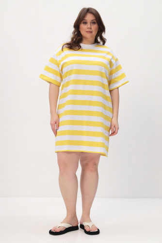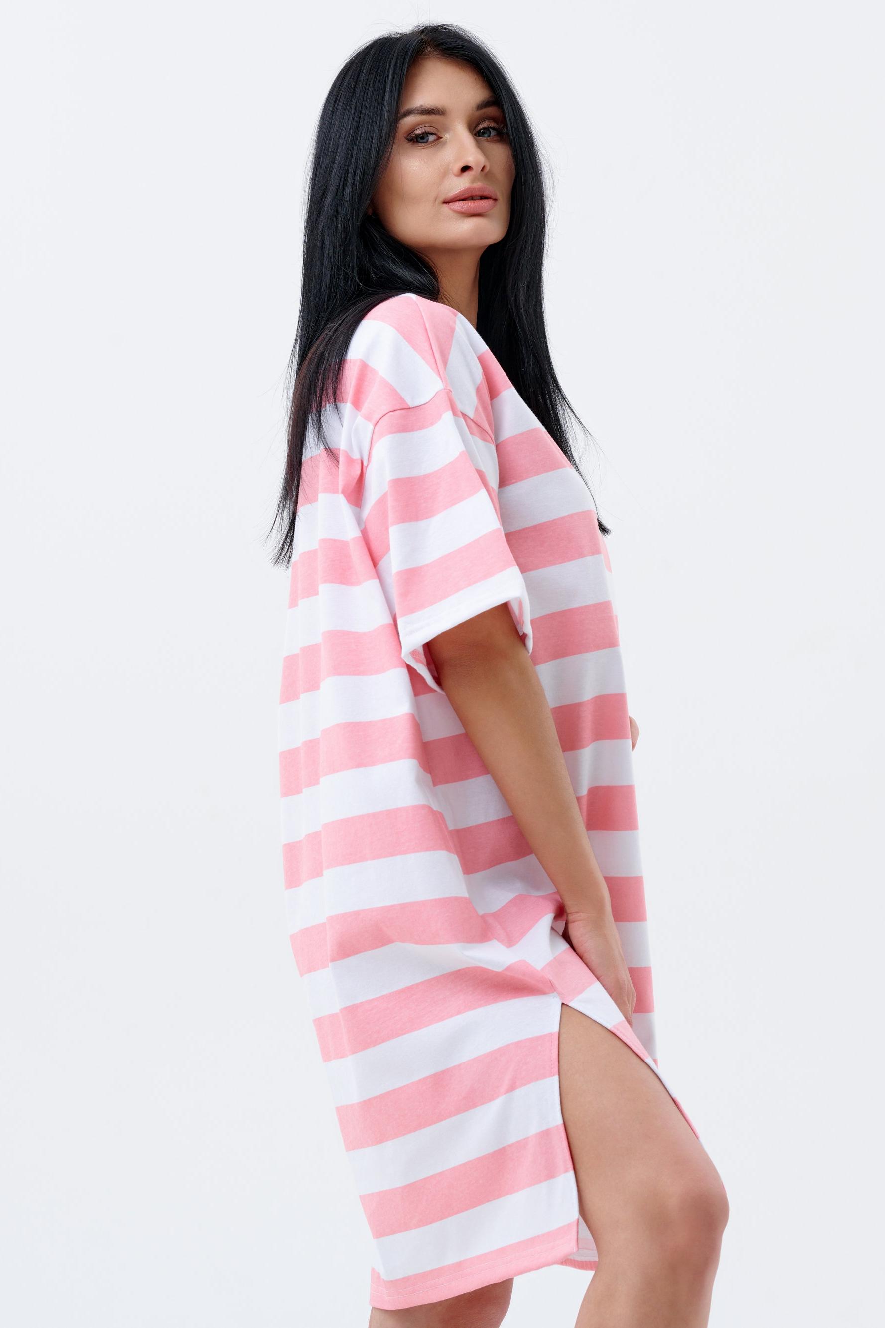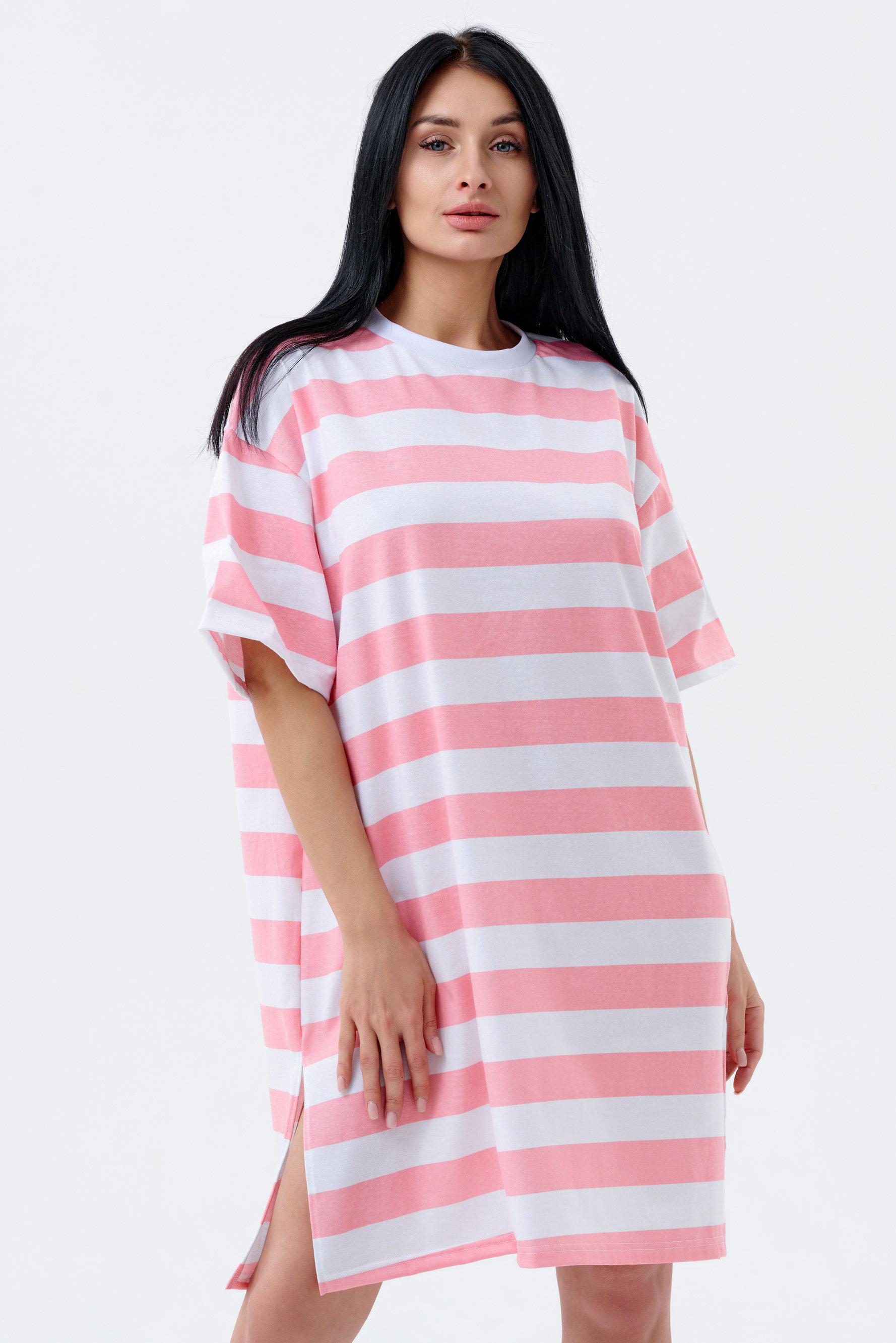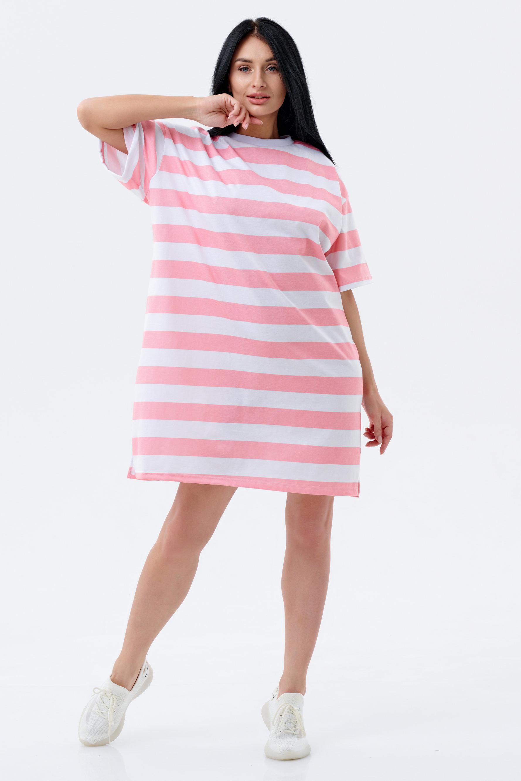 Платье футболка Фурор – легкое, стильное дополнение Вашего гардероба. Свободный крой, удобная посадка и модный принт подчеркнут Вашу индивидуальность. Спущенная линия рукавов, округлый вырез горловины, удобная длина и разрезы по бокам – делают модель платья идеальной для повседневной носки. В нем комфортно выйти на прогулку, носить дома или отправиться в путешествие или экскурсию.