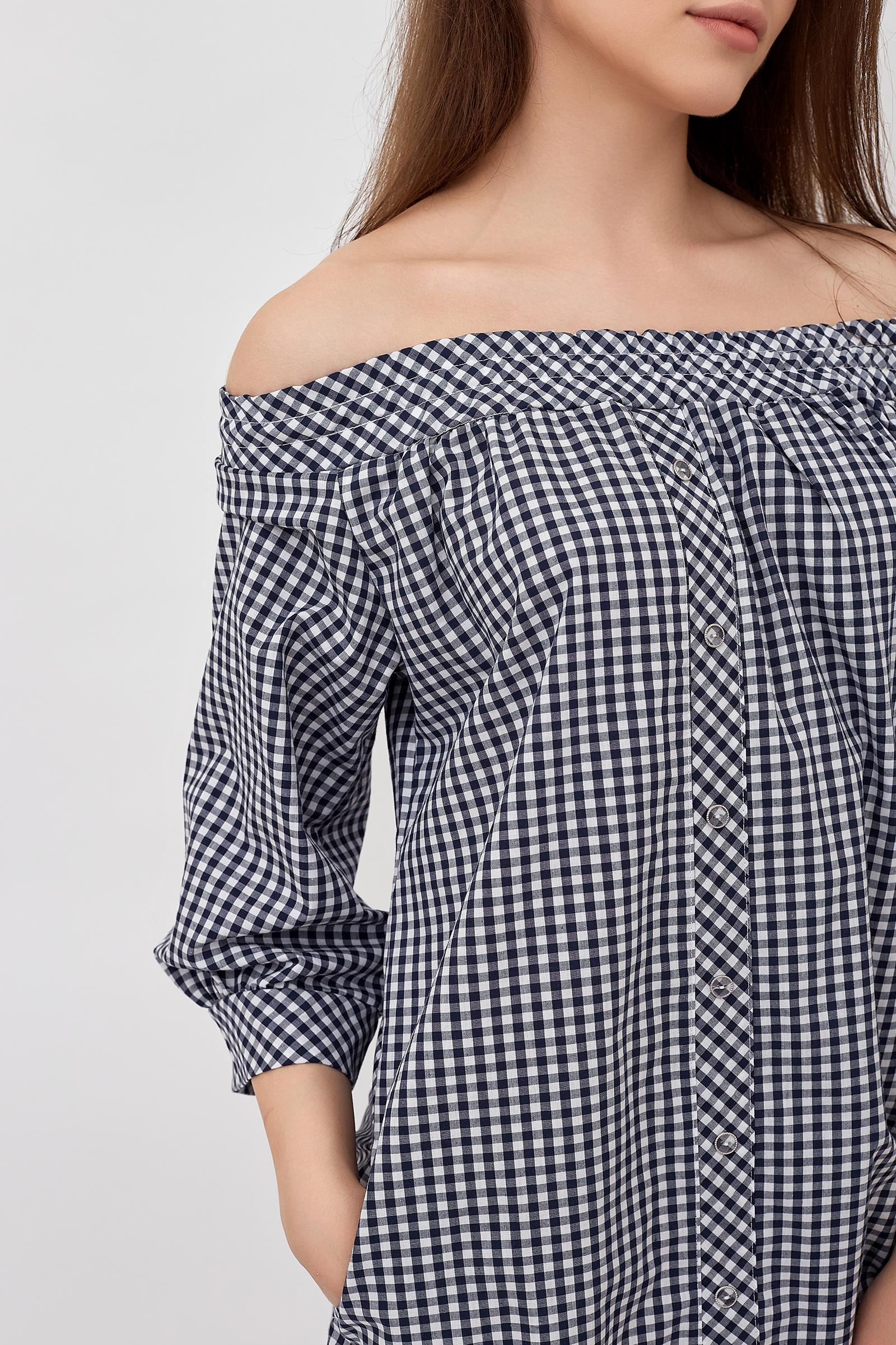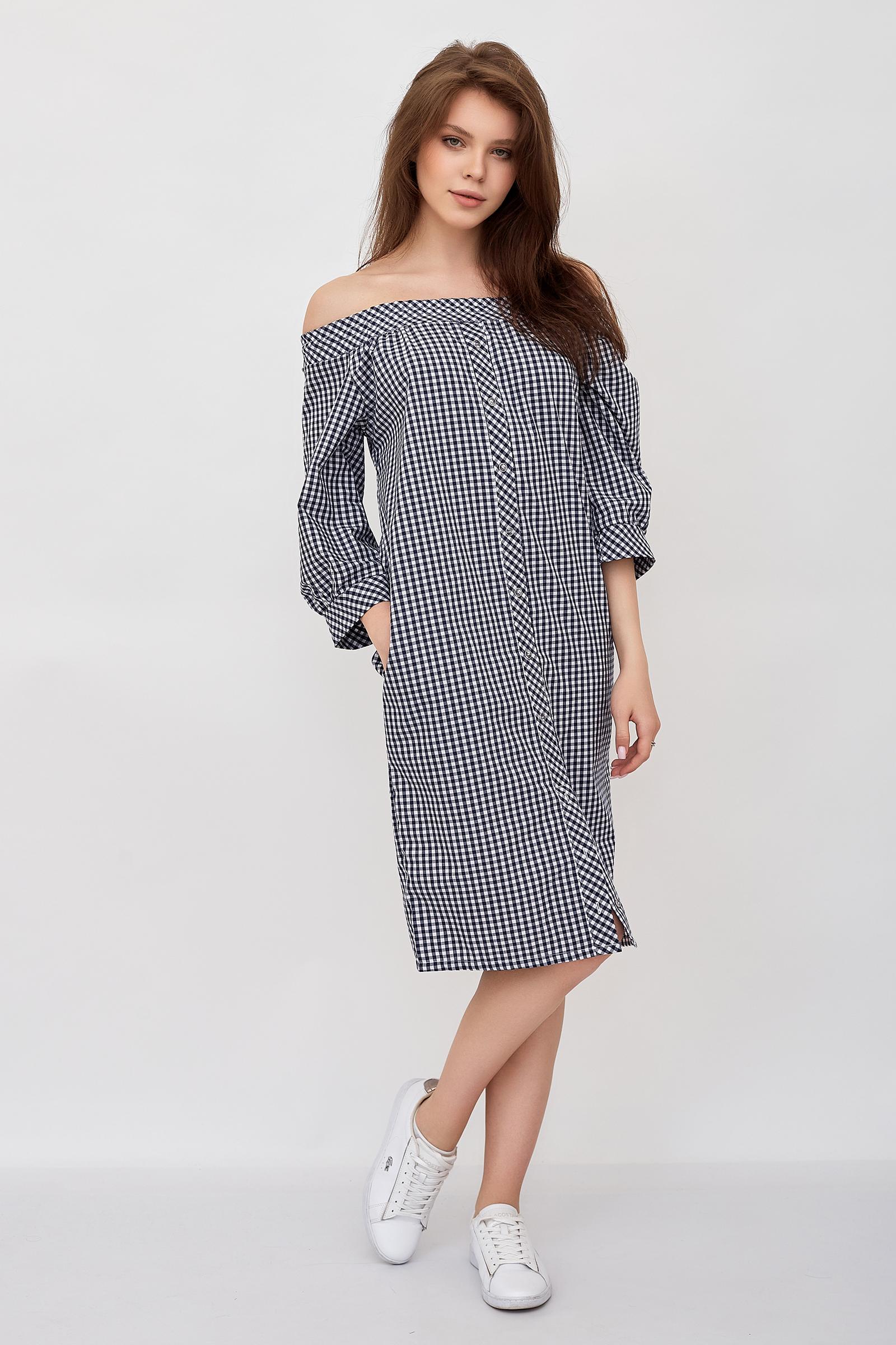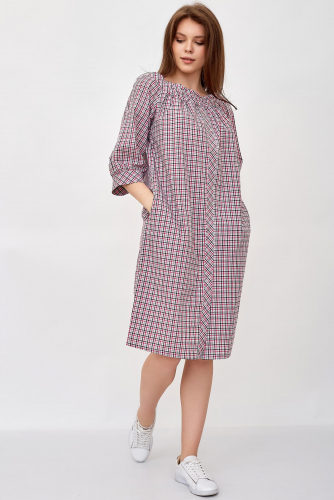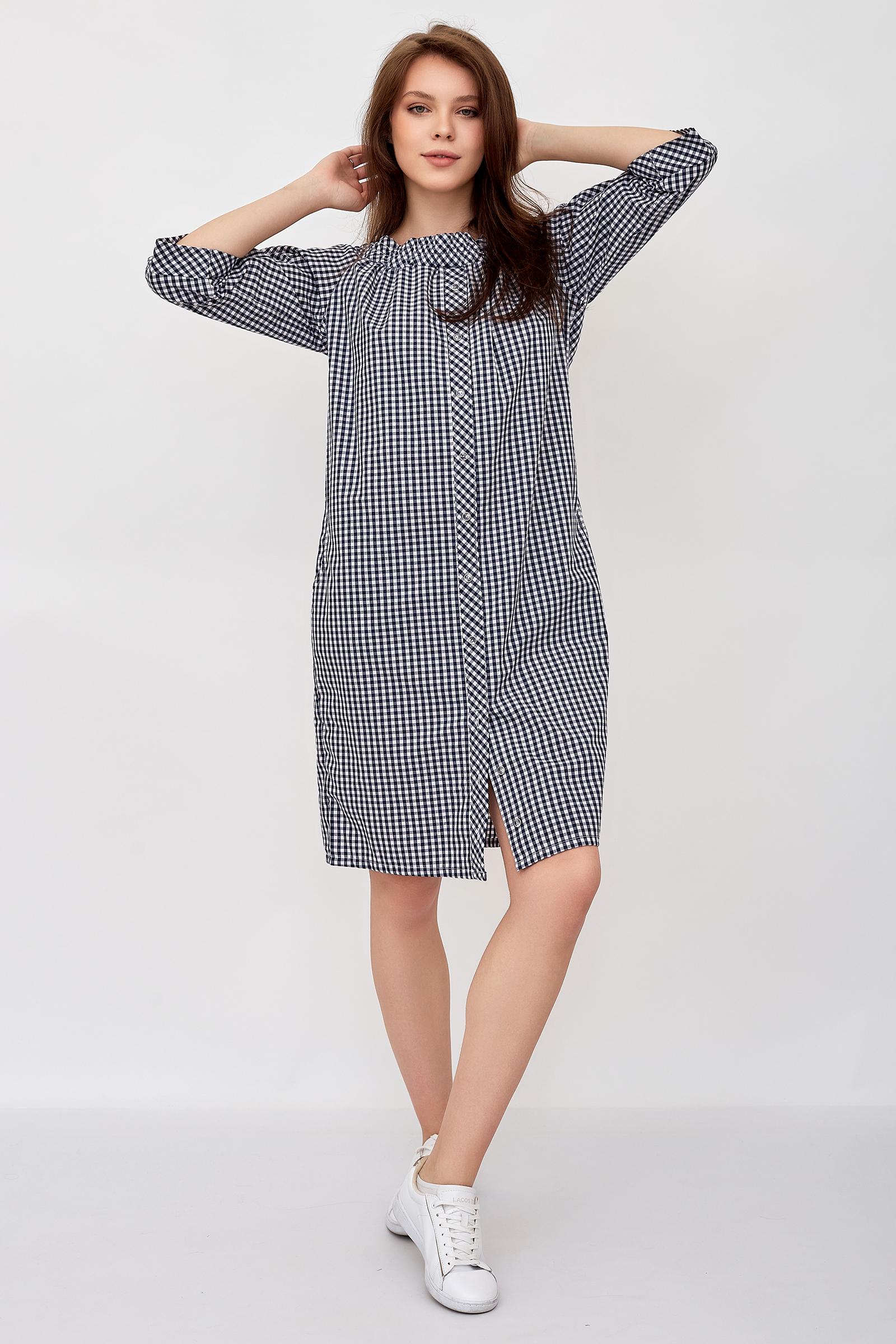 Изумительное летнее платье в клетку с горловым вырезом Анжелика. Модель прямого силуэта с карманами. Полочка украшена пуговицами по декоративной планке. Длинный рукав фонарик с манжеткой. В таком платье вы будете выглядеть модно и стильно.