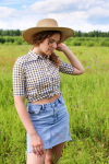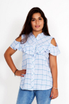 Размер соответствует. Приличная рубашка за такие деньги. На жару подойдёт. На ОГ 108, ОТ 90, ОБ 110 взяла 54 размер. Села не в обтяжку. У кого полные руки с таким рукавчиком будет не очень... Может кому мой отзыв поможет... Дополню - после стирки подсела на размер, жаль...
