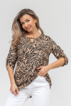 Женская туника приталенная выполнена из 100% хлопка. Удобный рукав 3/4 и удлиненный силуэт позволит его обладательнице создавать яркие образы. Стильный принт подчеркнет индивидуальность и придаст неповторимый шарм. Округлая горловина украшена стильным акцентом - вырезом на мысик. Стильная туника из легкого и дышащего трикотажа в полоску, подходит женщинам любого возраста и прекрасно садится на любую фигуру.