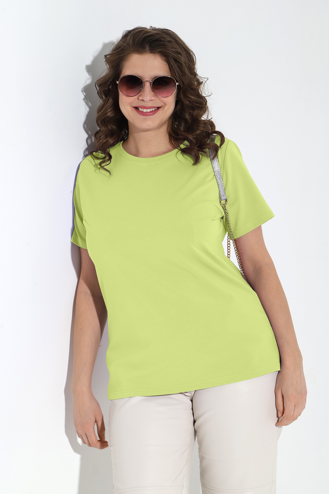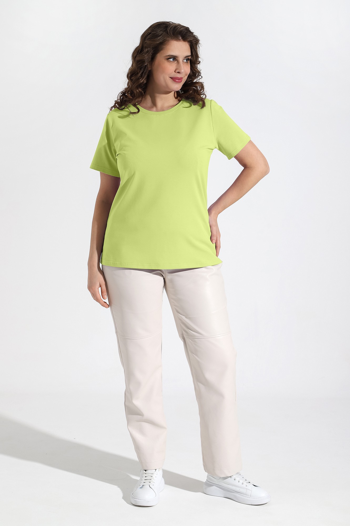 Футболка женская из трикотажного гладкокрашеного полотна «кулирка» с лайкрой, классического покроя, с короткими втачными рукавами и горловиной овальной формы, обработанной втачной планкой.