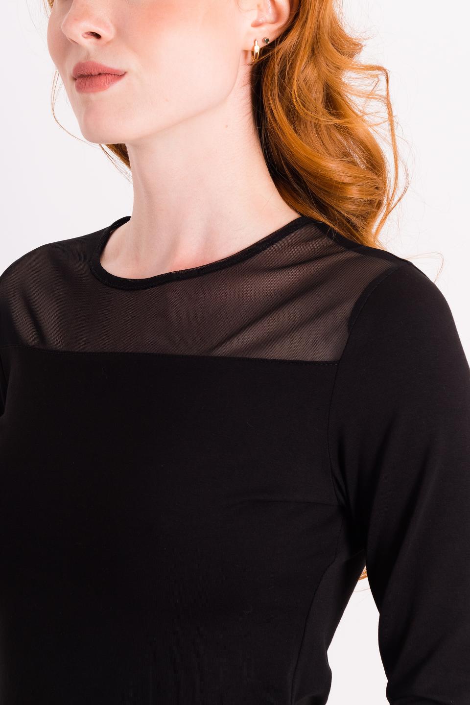 Описание: Лонгслив с кокеткой и длинным рукавом из гипюра вносит нотку чарующей элегантности в Ваш гардероб. Рисунок гипюра может меняться в разных партиях.