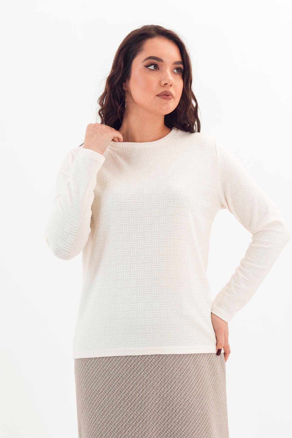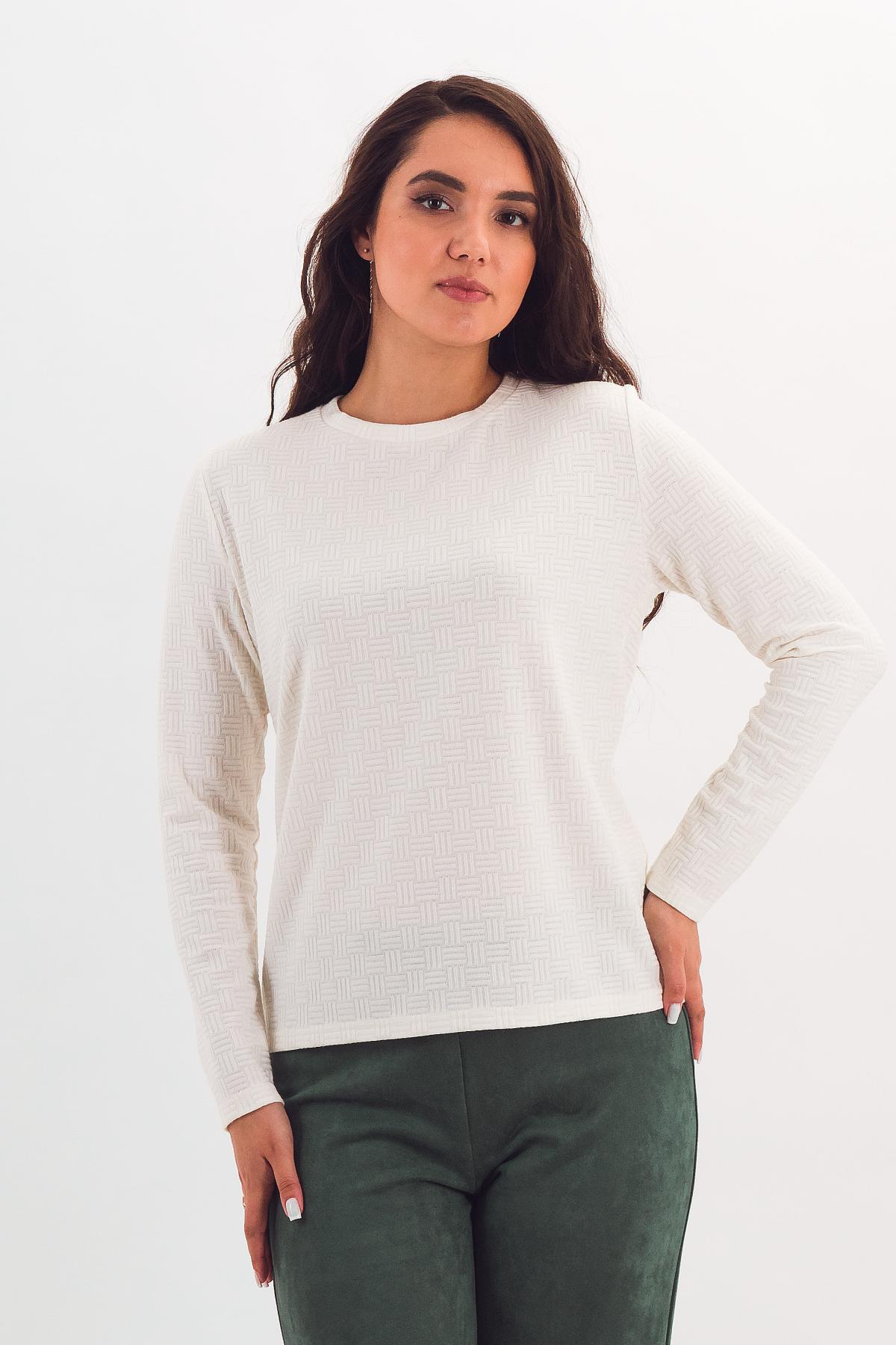 Описание: Мягкий, теплый и комфортный джемпер прямого силуэта. Узкая планка мягко обрамляет горловину. Декоративная строчка по центру переда зрительно разбивает фигуру и является ярким акцентом в модели.