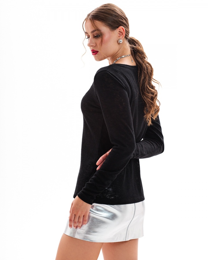 Полупрозрачный лонгслив с длинным рукавом в однотонных базовых цветах. Лонгслив премиум качества сделан из мягкого трикотажа "паутинка", которая умеренно тянется в ширину и имеет нежный внешний вид — то, что нужно для универсальных офисных нарядов. Ткань удобна в уходе, совершенно не капризна и легко стирается.