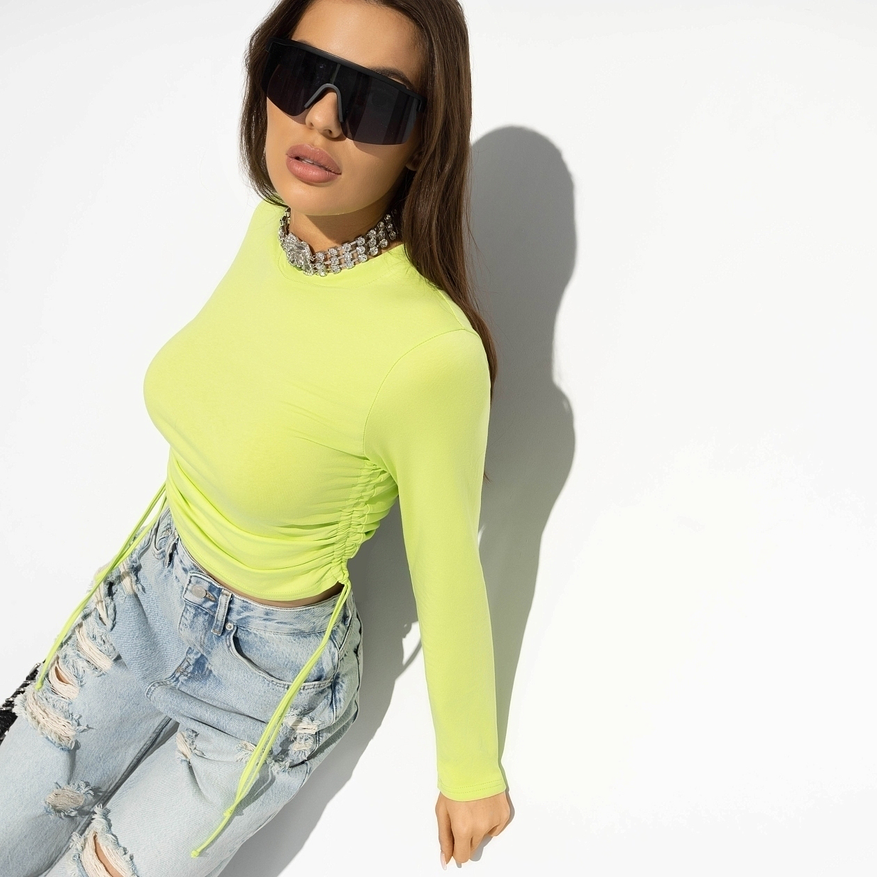 Трикотаж «кулирка», из которого выполнен лонгслив, заслуживает особого внимания благодаря своей воздушности и способности подчеркивать достоинства фигуры. Этот материал делает одежду невероятно комфортной даже в течение длительного времени. Лонгслив идеально подходит для любого сезона, он защищает от прохлады осенними вечерами и дарит комфорт в теплые дни. Разместив такой товар в своем ассортименте, вы сможете удовлетворить запросы самых взыскательных модниц, преследующих целью выглядеть модно и стильно. Эффективное оптовое приобретение этой модели позволит вашему бизнесу выйти на новый уровень.