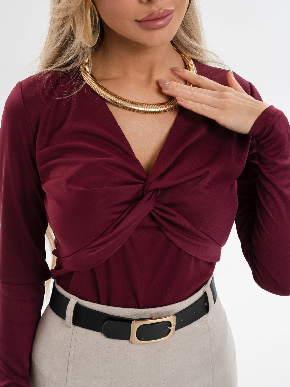 Блузка прилегающего силуэта из эластичного трикотажа.