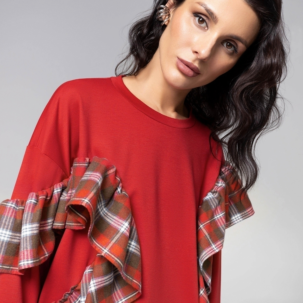 Лонгслив насыщенного красного цвета выполнен в одном из главных цветов сезона FW 25/26 по версии Pantone. Модель украшена элегантными объемными рюшами, которые создают выразительный акцент и подчеркивают женственный силуэт. Безупречный пошив демонстрирует идеально ровные строчки и тщательную обработку всех деталей. Свободный крой гарантирует комфортную посадку на любой тип фигур, а ткань – исключительную мягкость и долговечность. Лонгслив станет яркой премиальной базой для создания как повседневных, так и нарядных образов.