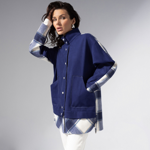 Трикотаж антипилинг. Вставки из клетчатой фланели формируют воланы по переду и рукавам. Свободный силуэт, круглый вырез, комфортная длина. Приятен к телу, сохраняет насыщенность цвета после стирок.