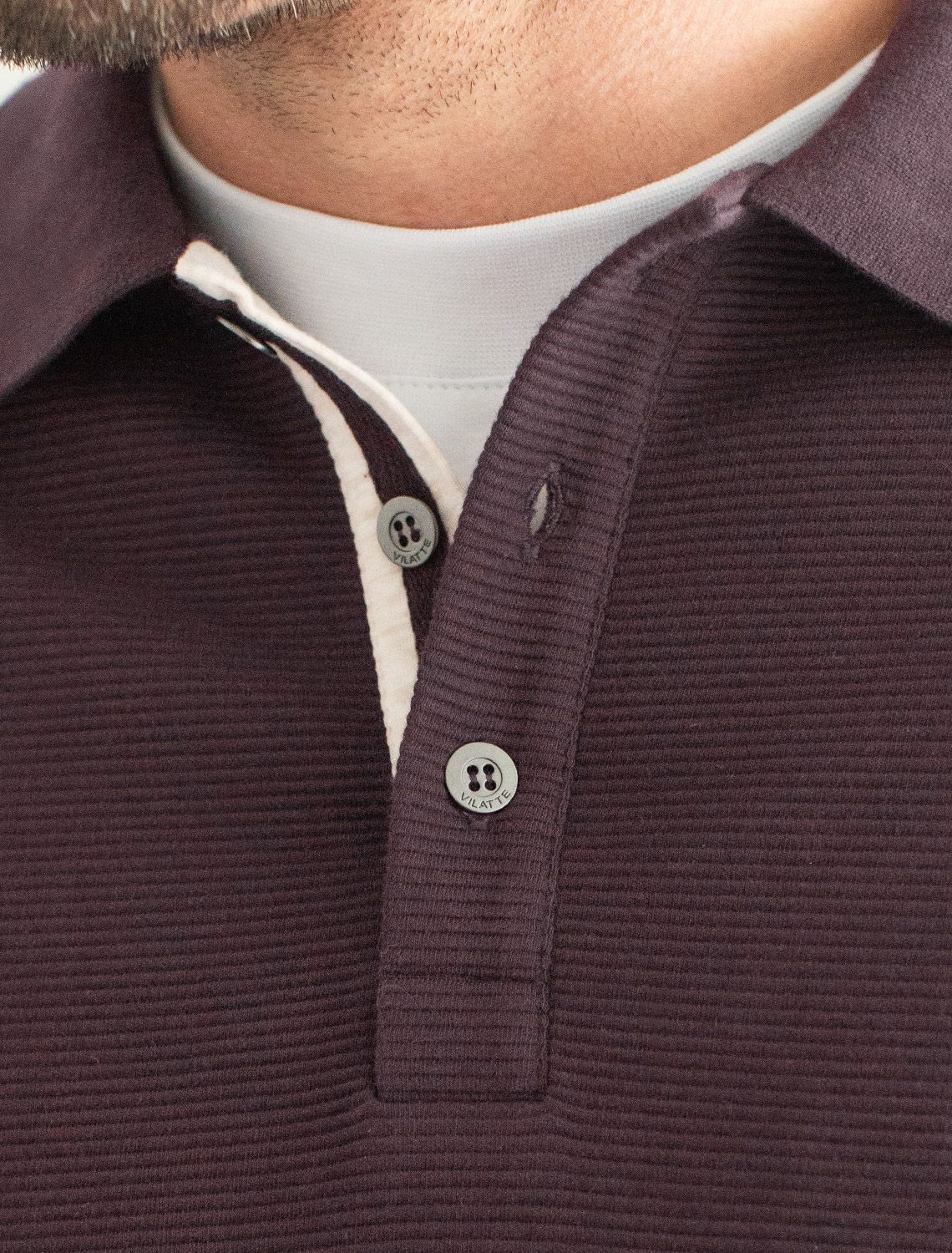 Стильный лонгслив цвета бургунди с плетеным воротником поло с застежкой на металлические пуговицы выполнен из премиального хлопка в сочетании с эластаном . Невероятно мягкая ткань из натуральных волокон - она едва ощутима на коже и словно обнимает тело. Материал при касании кажется бархатистым, при движении он словно повторяет все мельчайшие линии фигуры. По свойствам материал сочетает в себе практичность и нежность: отлично пропускает воздух, сохраняя ощущение свежести в течение всего дня, при этом в нем тепло в прохладную погоду.Идеально подходит для чувствительной кожи, не вызывает раздражения и дискомфорта. Удобный отложной воротник с контрастной отделкой делает образ современным и стильным, а длинные рукава с манжетами защищают руки при ветреной погоде.