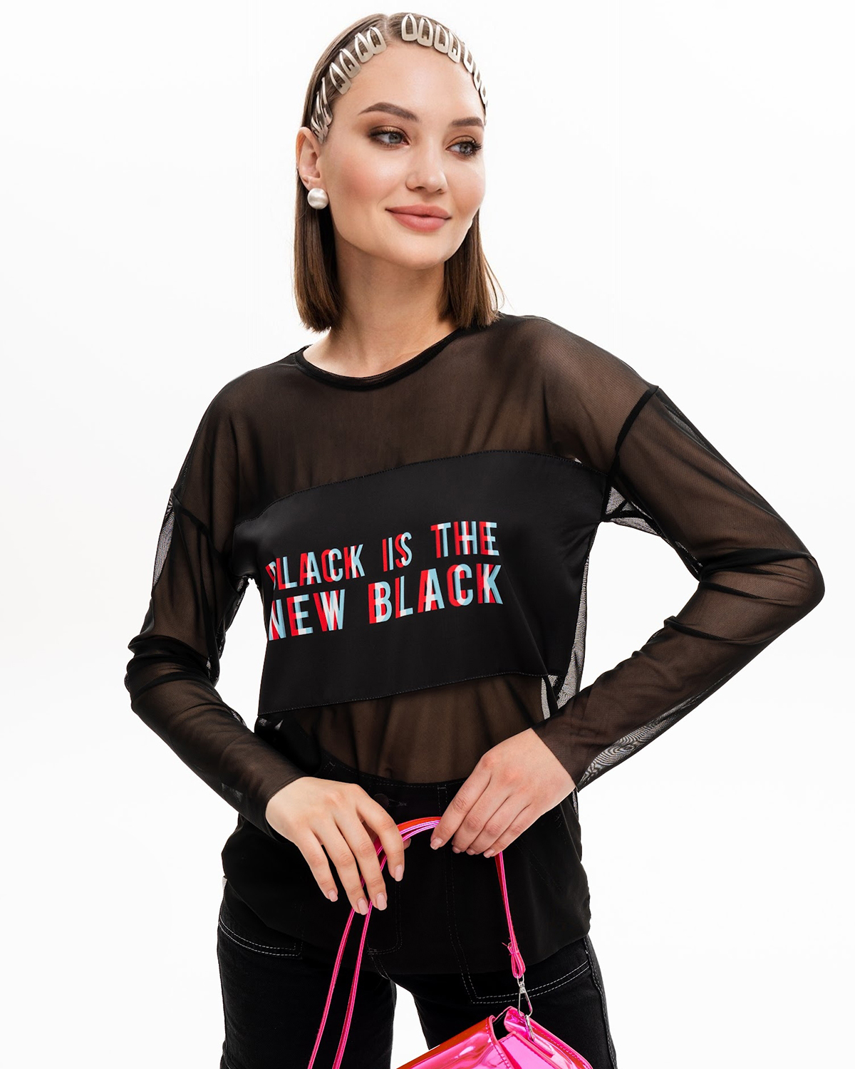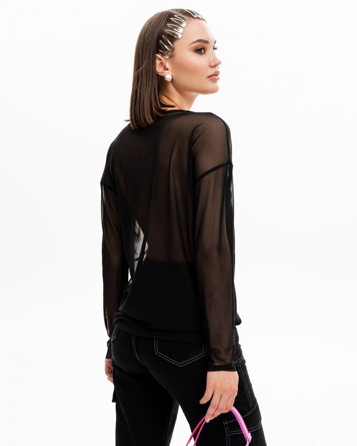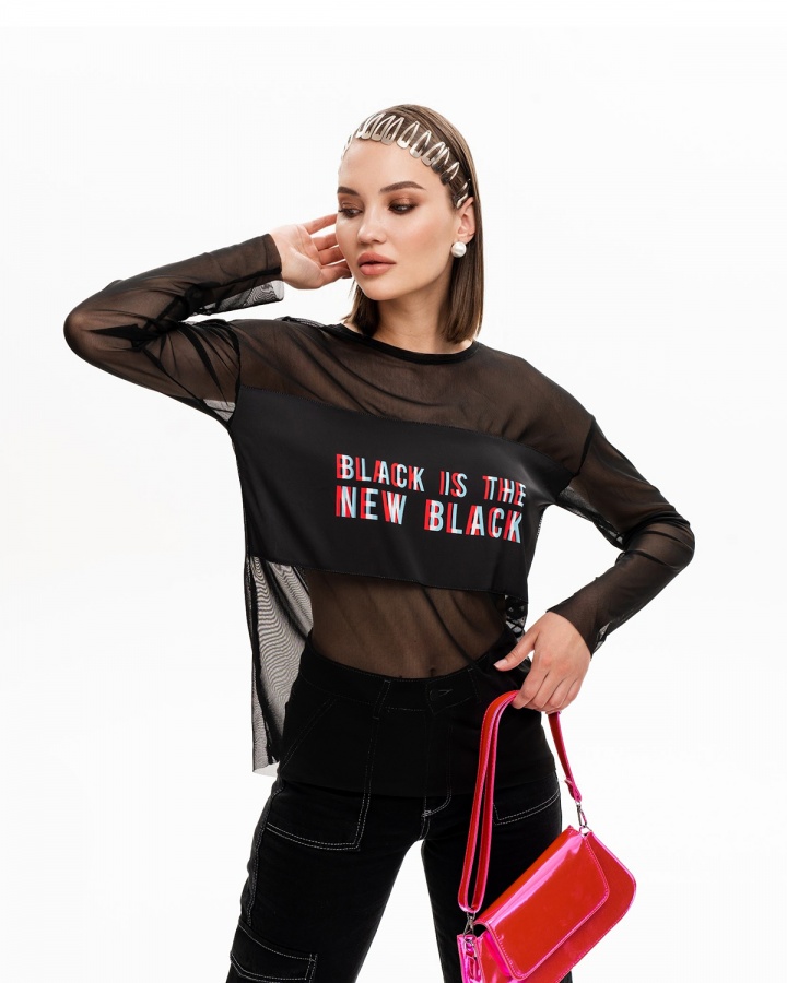 Лонгслив женский из сетки с принтом - трендовый элемент гардероба для создания интересных многослойных образов. Его можно надевать под платье, жакет, кардиган, жилет или даже футболку. Принт - узор. Лонгслив из сеточки очень приятен для тела. Он как будто обволакивает кожу. Материал мало тянется.